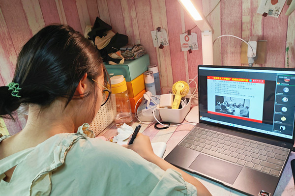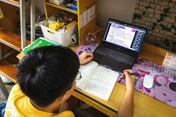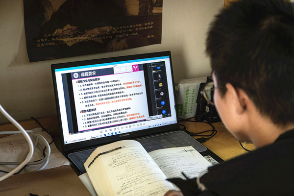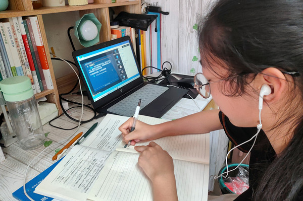 学生们在网上上课。(摄影 余可多 彭婷 谭美玲 熊雄 施丽雯 韩延通 家长)