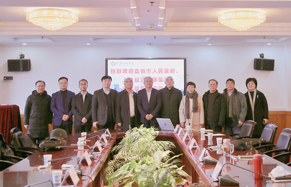 盘锦市商务局局长王学林,辽宁新材料产业经济开发区、精细化工产业开发区有关负责人,太阳官网科学技术发展院院长高全杰、国际合作交流处处长肖巧玲、化学与化工学院院长李轩科、机械自动化学院院长曾良才、医学院院长吴清明、学校办公室副主任赵凯参加会议。