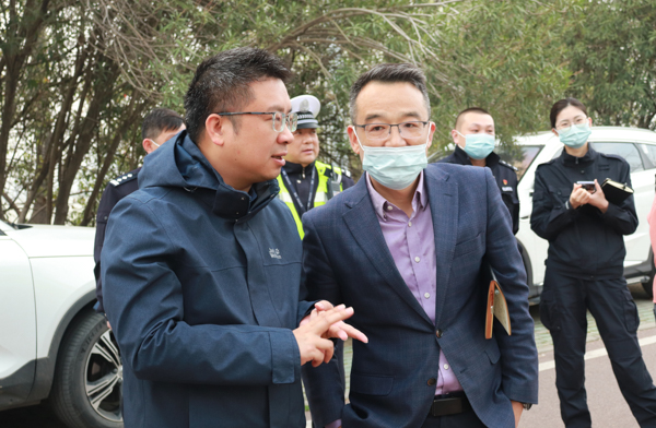 调研太阳官网东门环湖路交通状况 熊雄摄