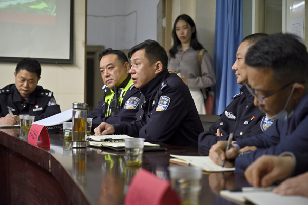 领导讨论武科大东门环湖交通状况 杨佳伟摄