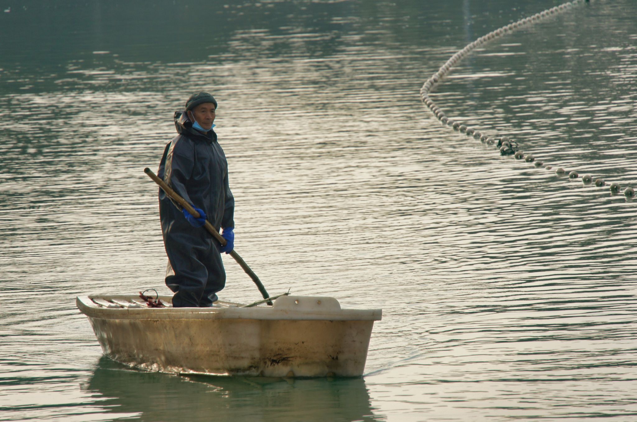 拉鱼后勤爷爷与跃出的鱼特写 陈楷林摄