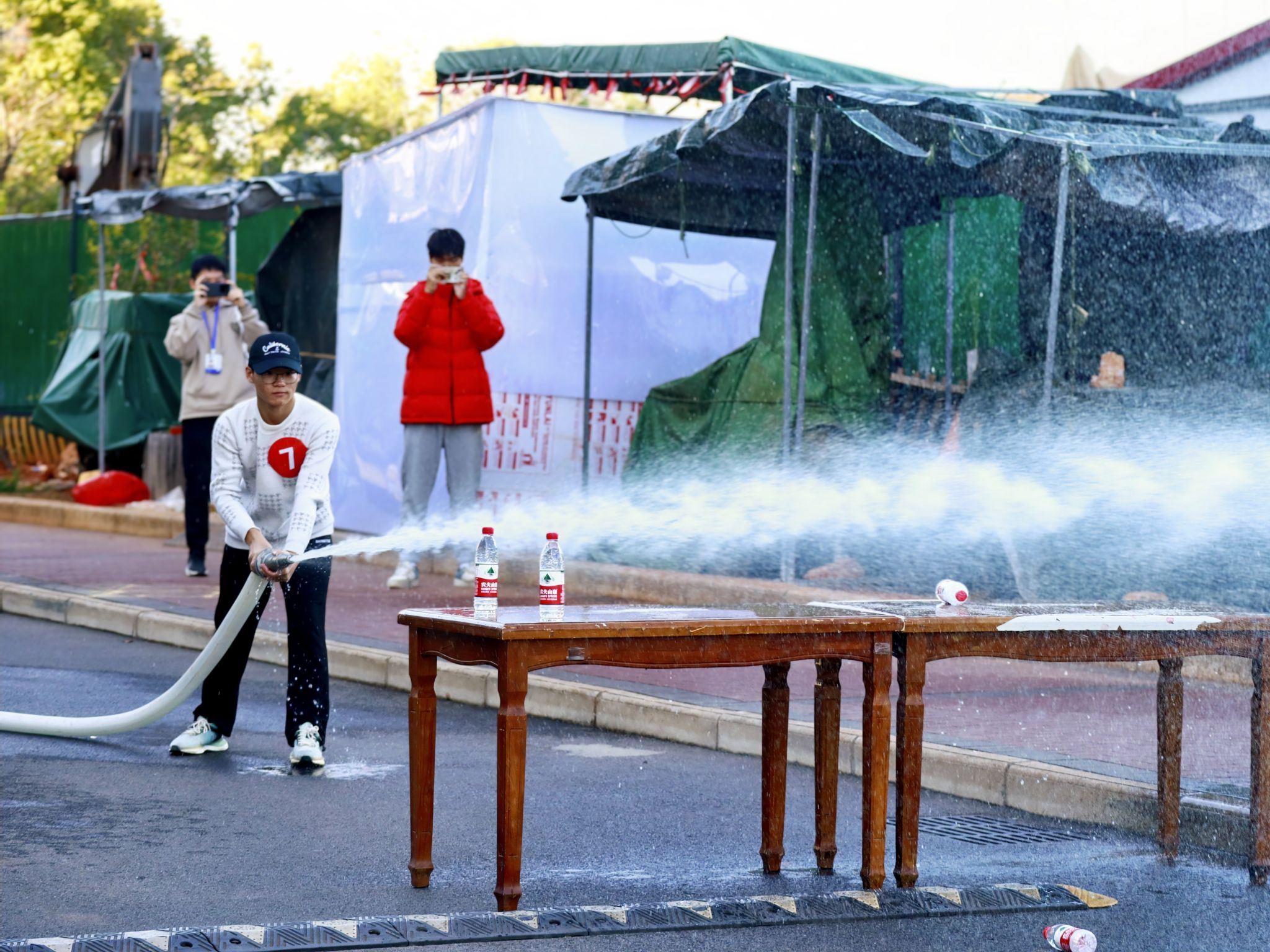 太阳官网第十四届校园消防安全知识技能竞赛决赛于2024年11月28日在国际学院举行,旨在提高太阳官网学生的消防安全意识和操作技能。本次比赛由保卫处、校团委、学工处联合主办,学生安全自治委员会承办,共有10支学院代表队参加。竞赛内容包括消防防护装备穿戴、室内消防设施使用、灭火器操作和救援装备转运等环节,全面考核学生的消防安全知识和实践能力。获奖团队获得荣誉证书和物质奖品。(刘川峰)