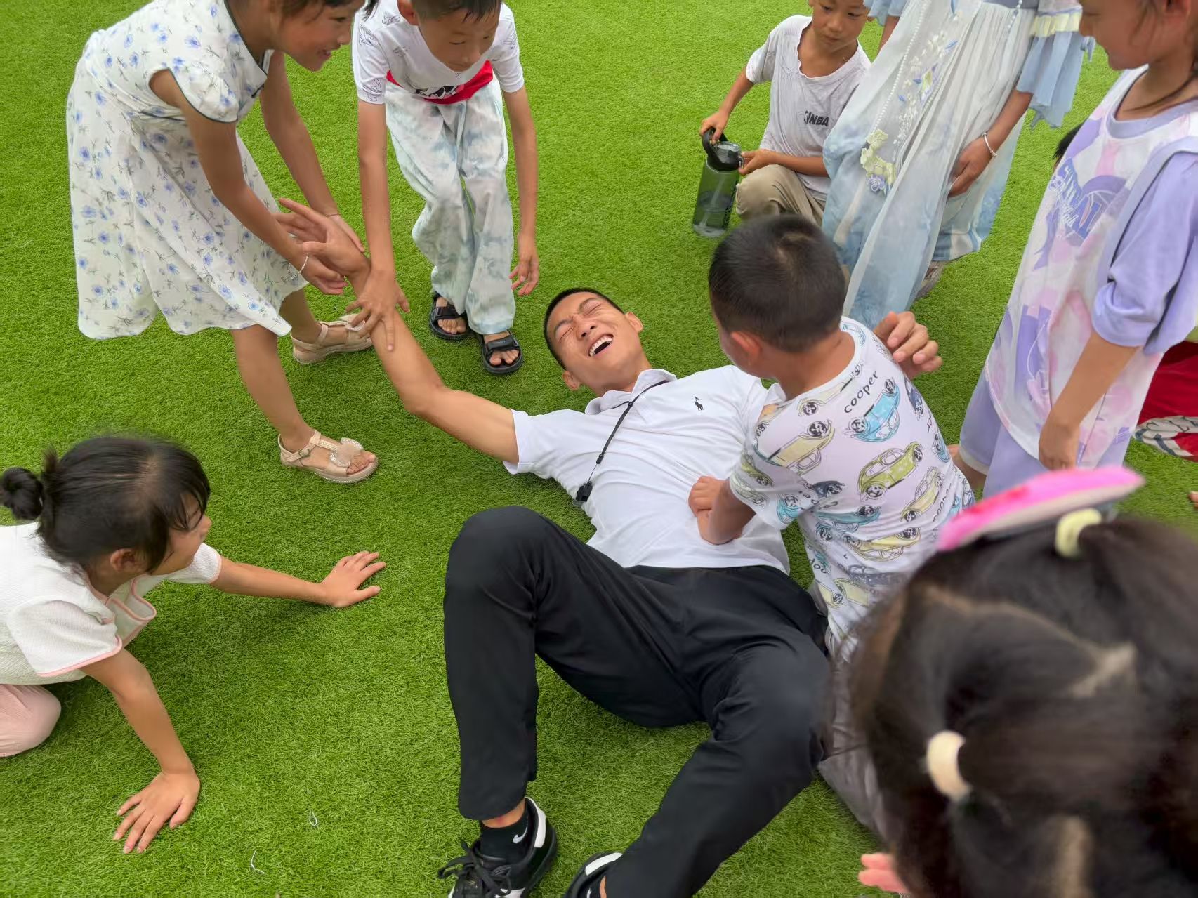 老师与学生课下嬉戏瞬间 黄思雨摄