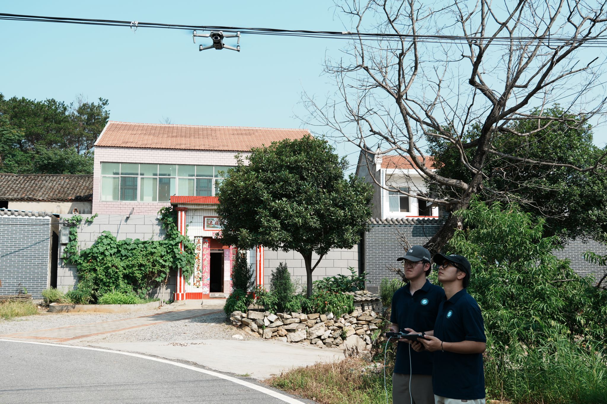 团队队员张明杰和胡国庆正在准备用无人机飞行航拍观察村落布局 叶科摄