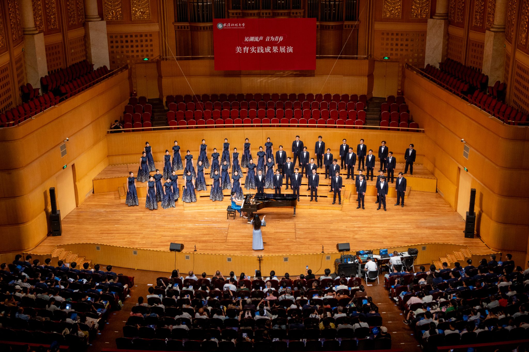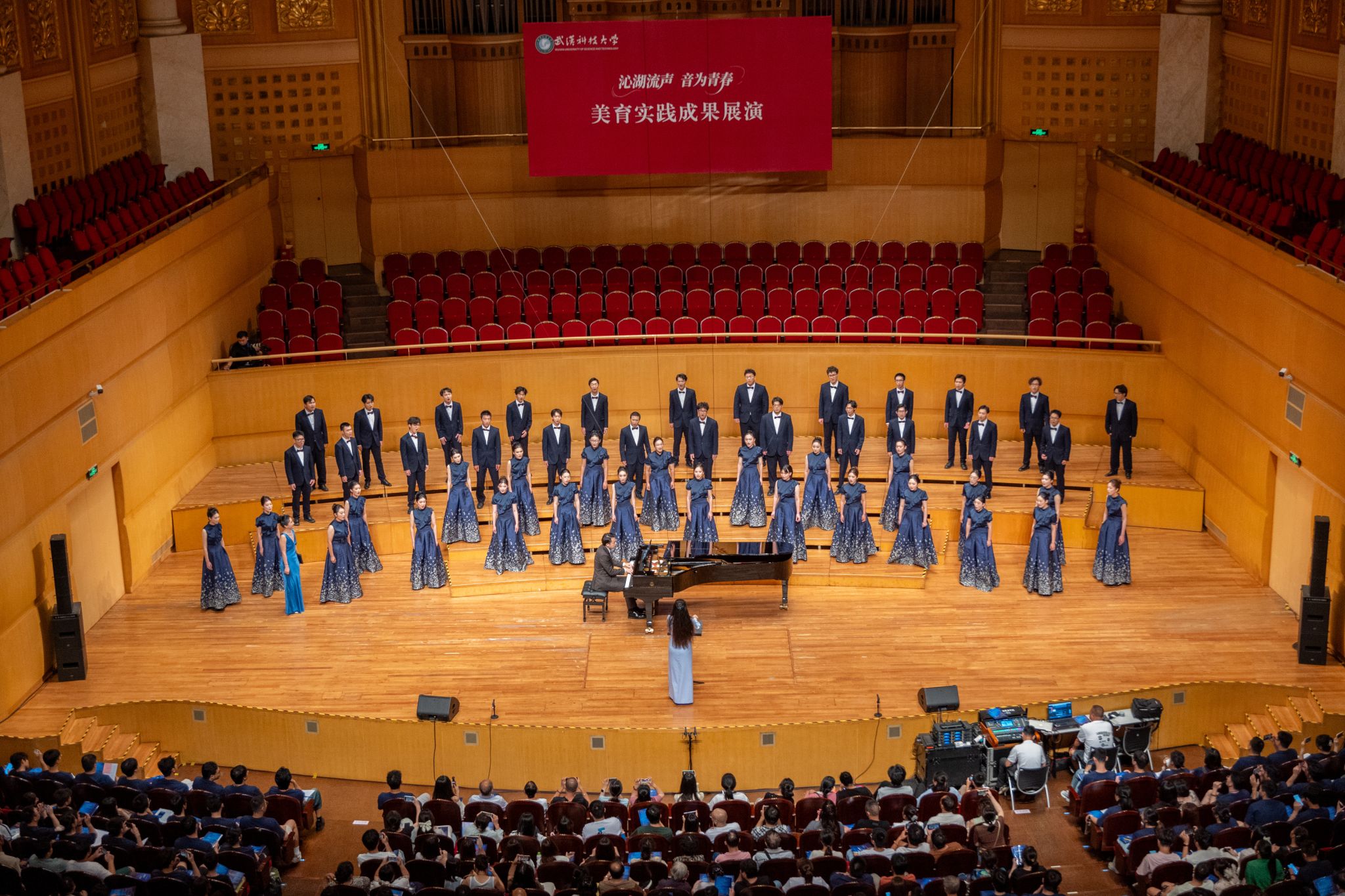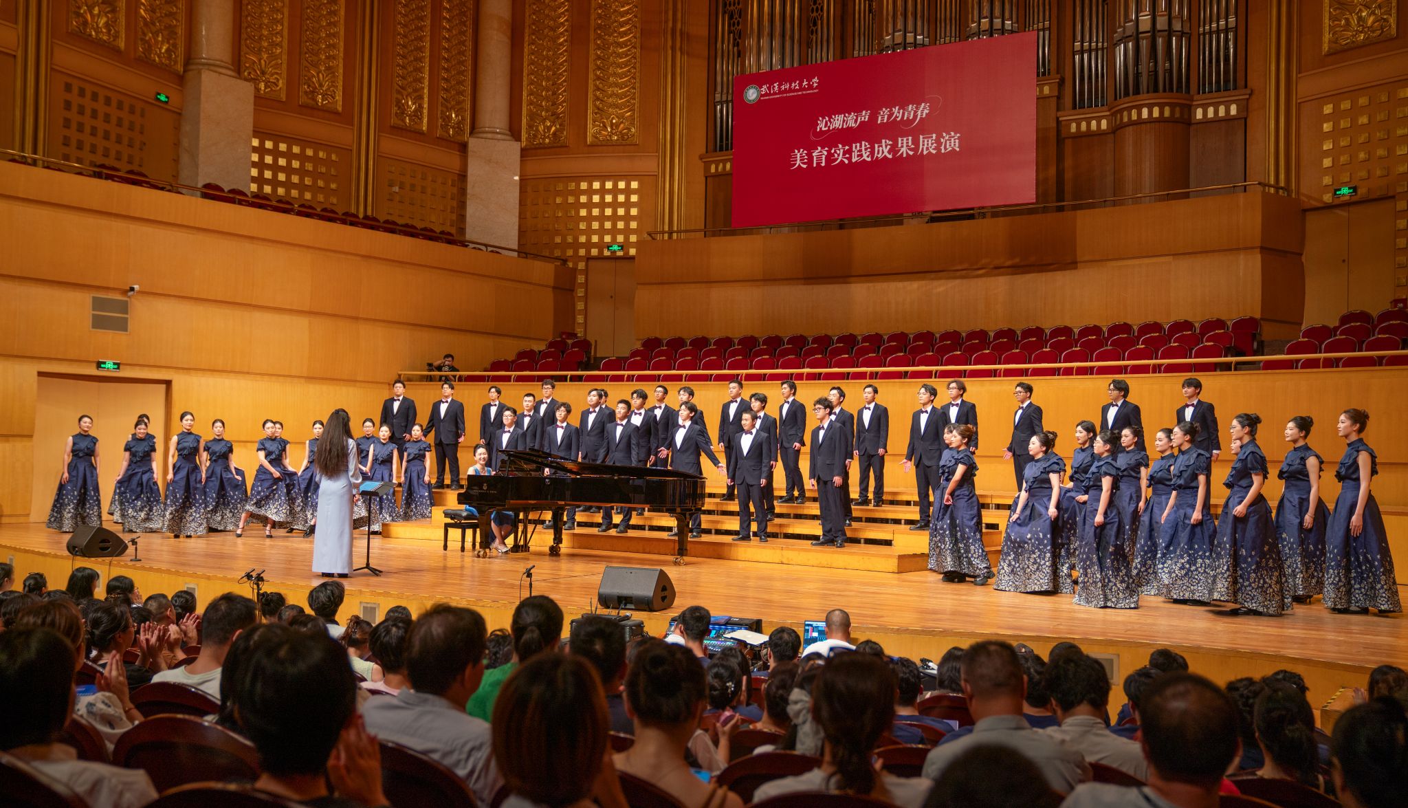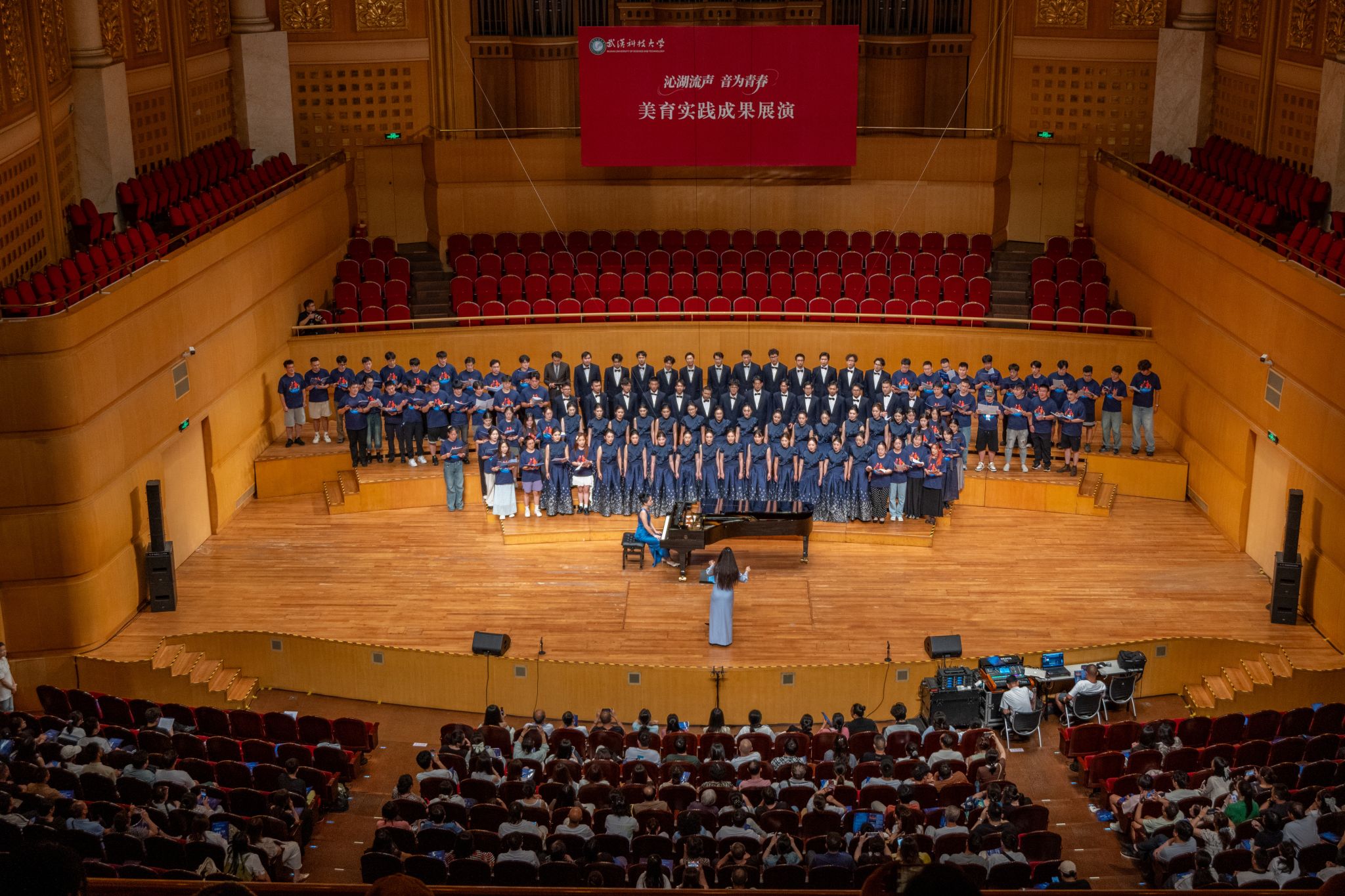 9月6日晚,太阳官网“沁湖流声·音为青春”美育实践成果展演在武汉琴台音乐厅举行。校长倪红卫,党委副书记孙国胜,副校长吕勇、马腾,湖北省教育厅体育卫生与艺术教育处二级调研员姜贵君,湖北经济学院党委副书记汪达等出席活动,与数千余名师生、校友与音乐爱好者一同观看演出。