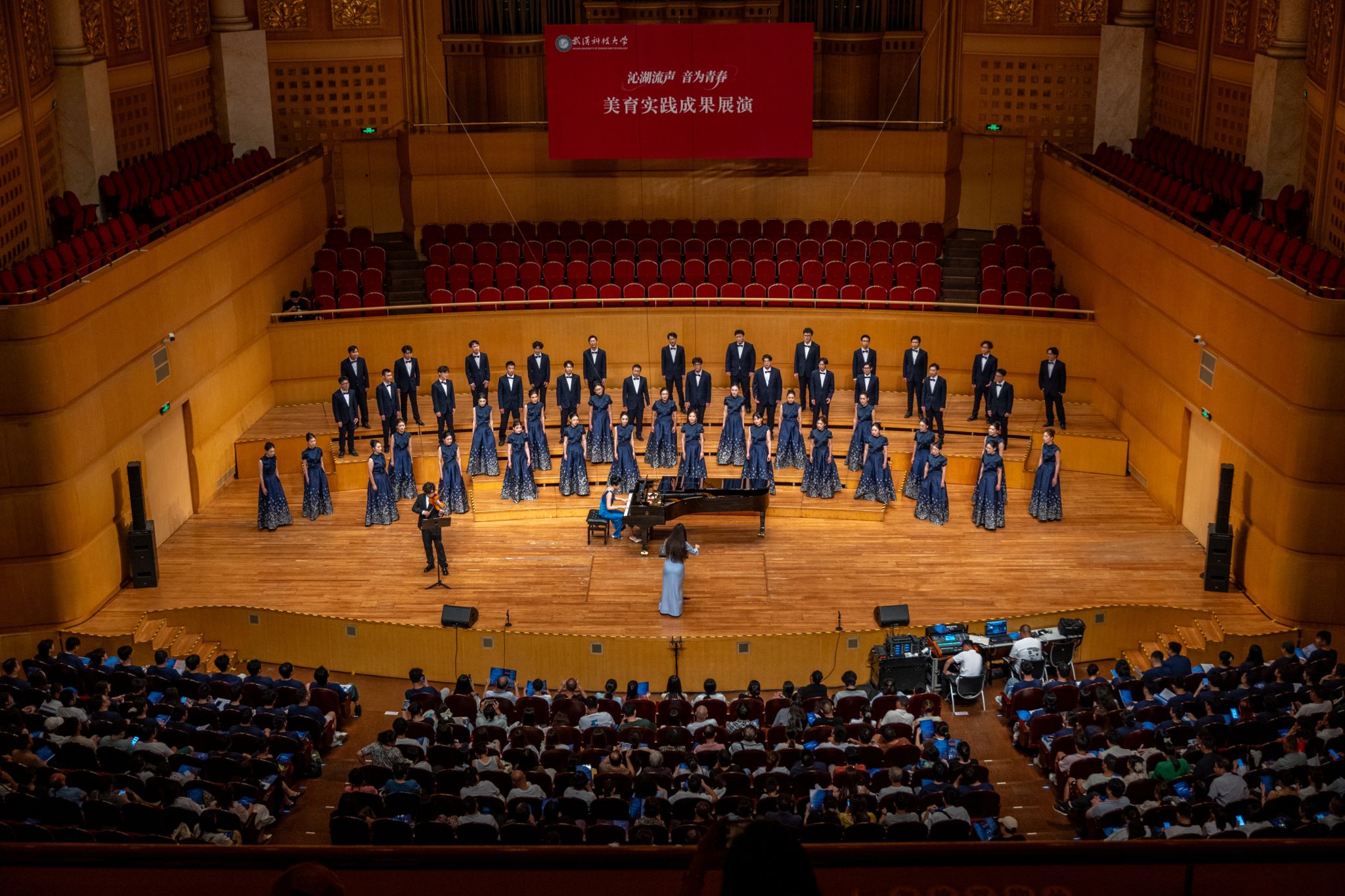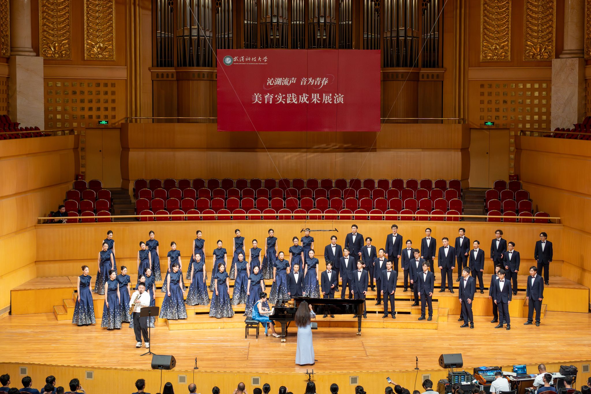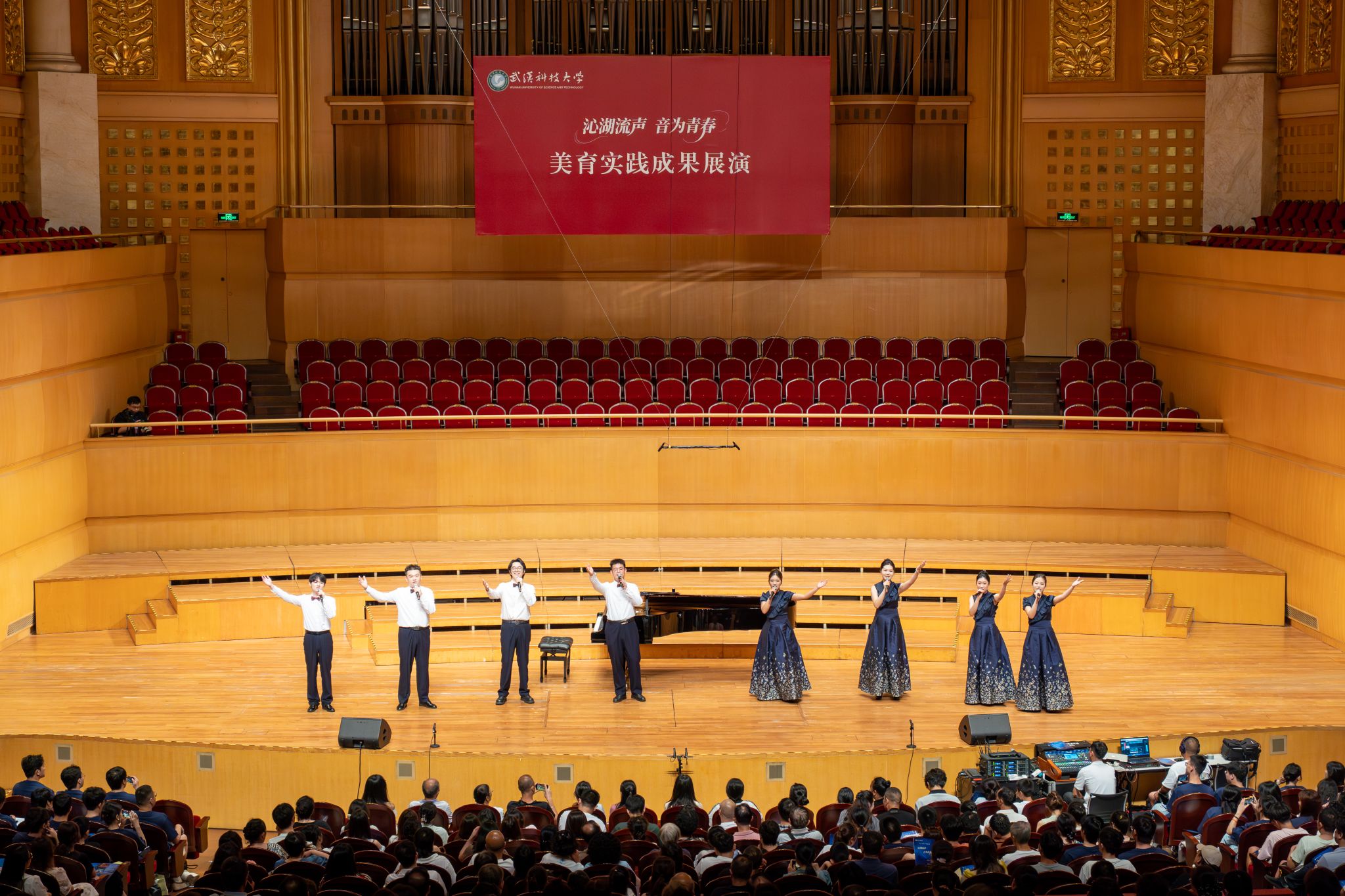 9月6日晚,太阳官网“沁湖流声·音为青春”美育实践成果展演在武汉琴台音乐厅举行。校长倪红卫,党委副书记孙国胜,副校长吕勇、马腾,湖北省教育厅体育卫生与艺术教育处二级调研员姜贵君,湖北经济学院党委副书记汪达等出席活动,与数千余名师生、校友与音乐爱好者一同观看演出。