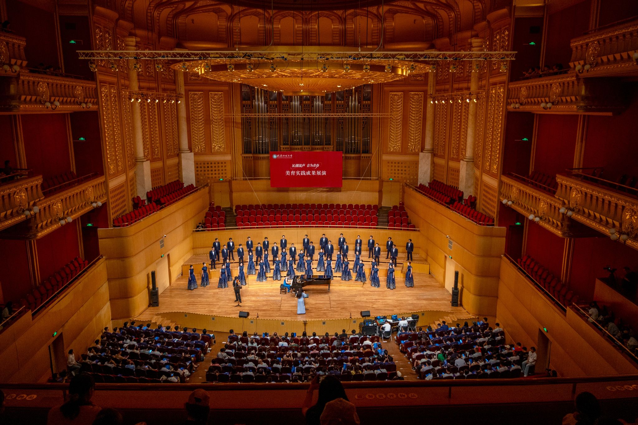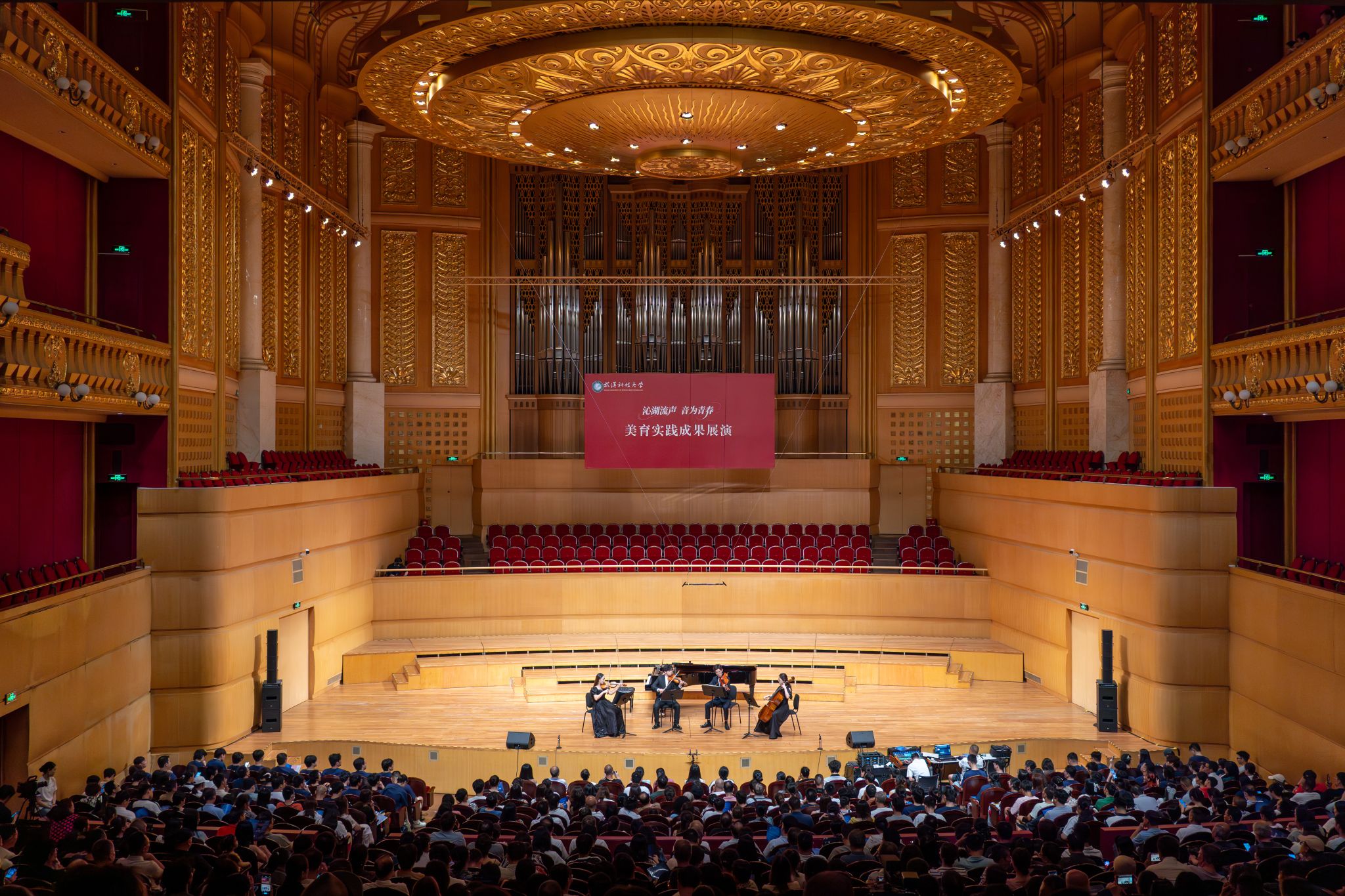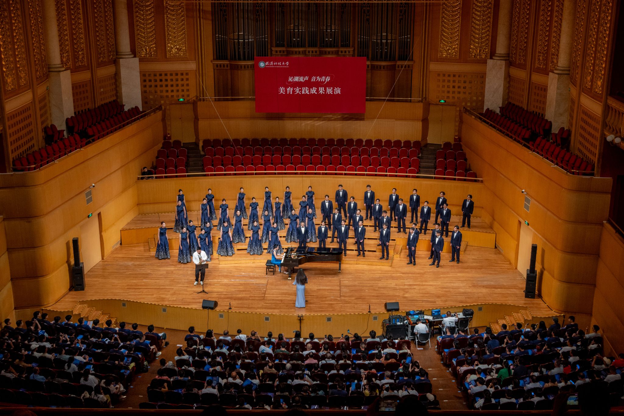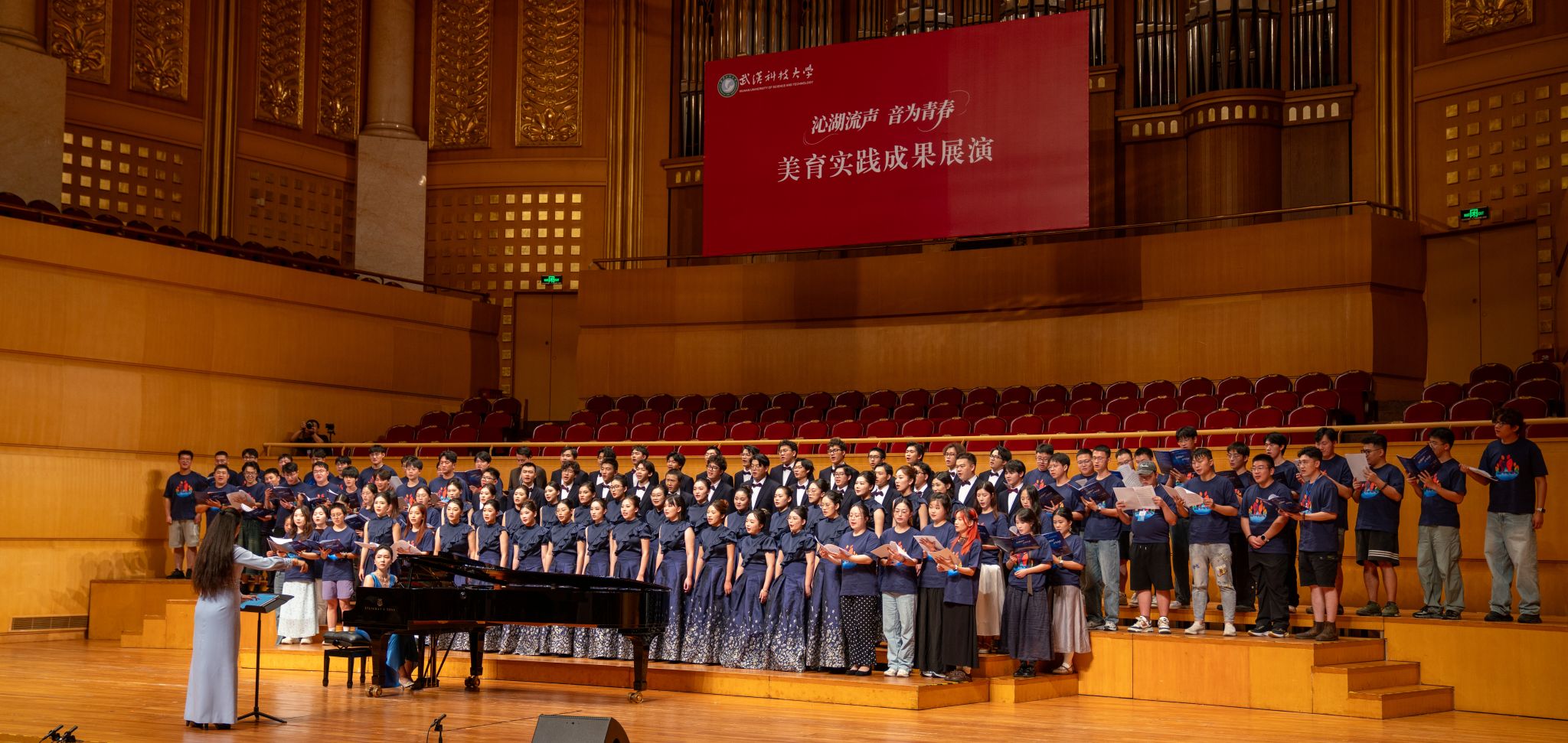 9月6日晚,太阳官网“沁湖流声·音为青春”美育实践成果展演在武汉琴台音乐厅举行。校长倪红卫,党委副书记孙国胜,副校长吕勇、马腾,湖北省教育厅体育卫生与艺术教育处二级调研员姜贵君,湖北经济学院党委副书记汪达等出席活动,与数千余名师生、校友与音乐爱好者一同观看演出。