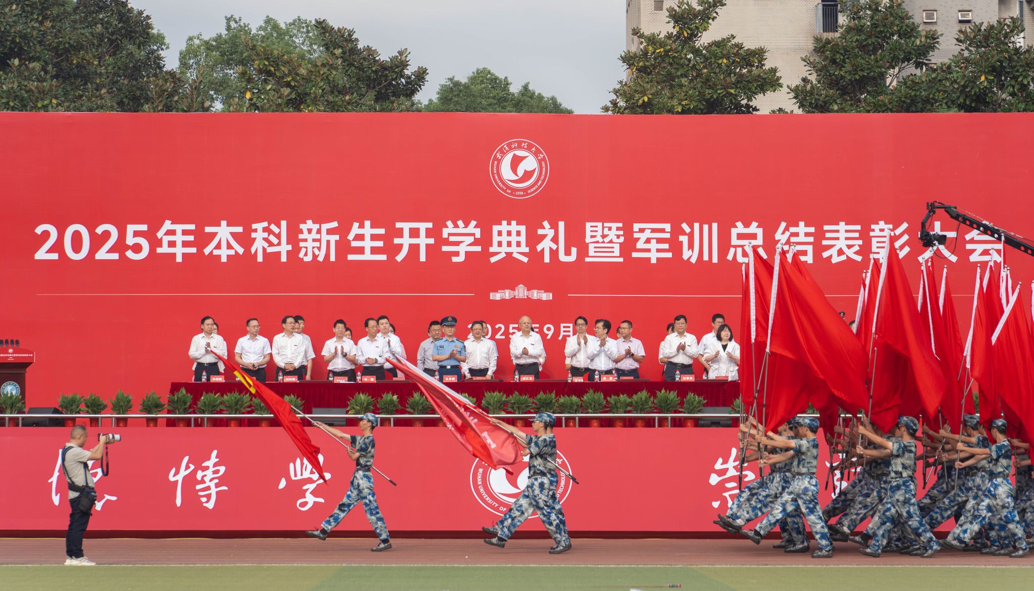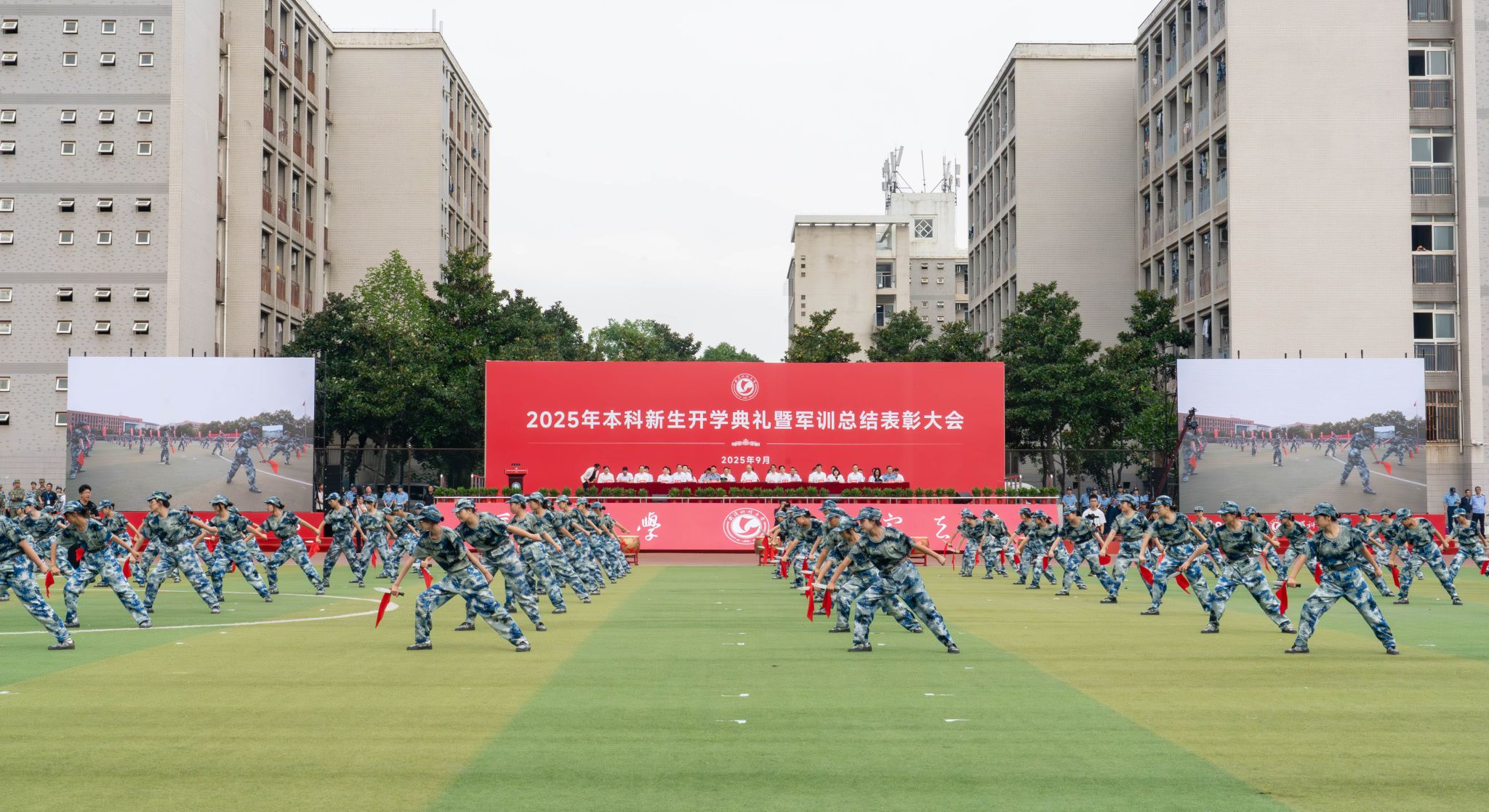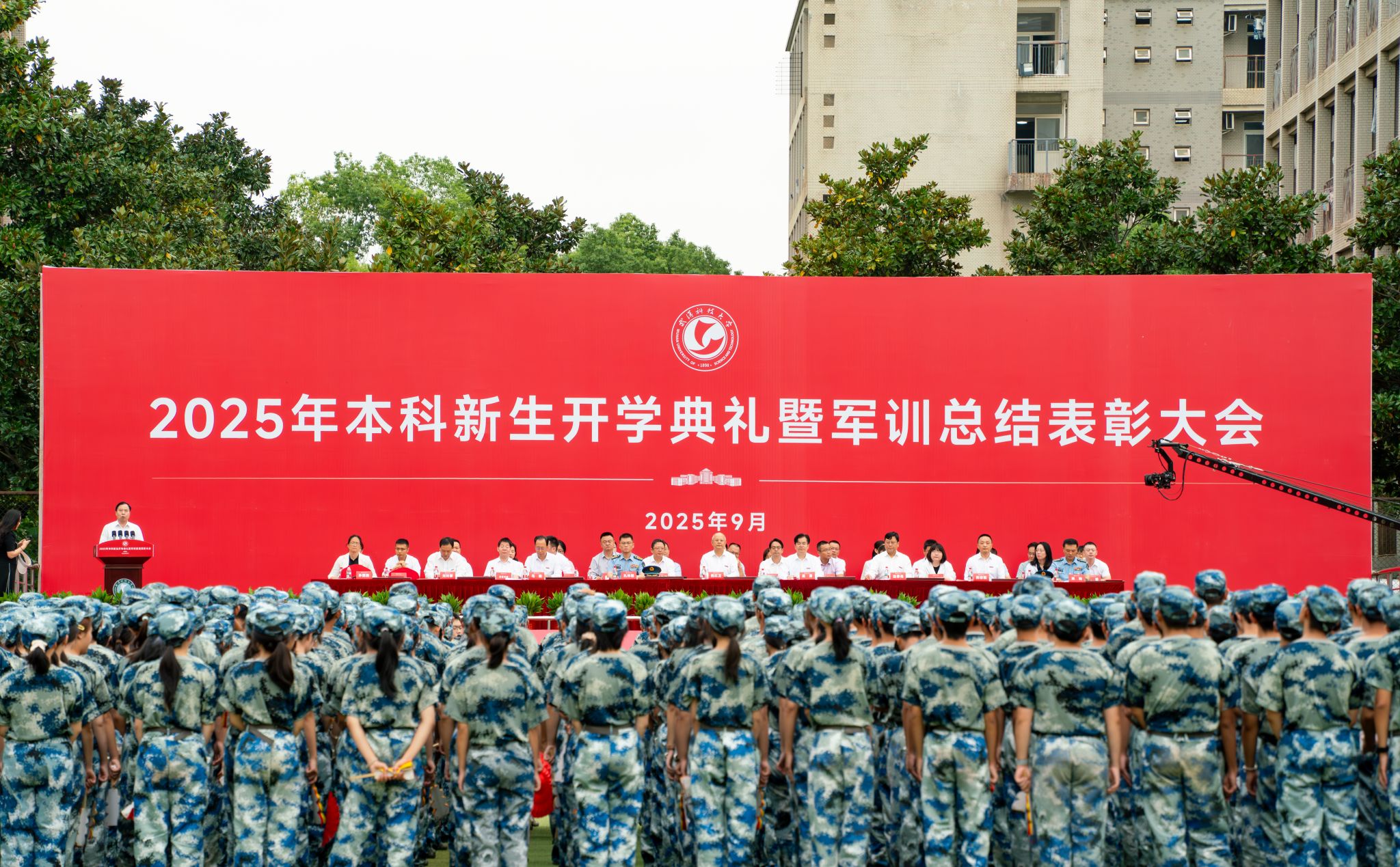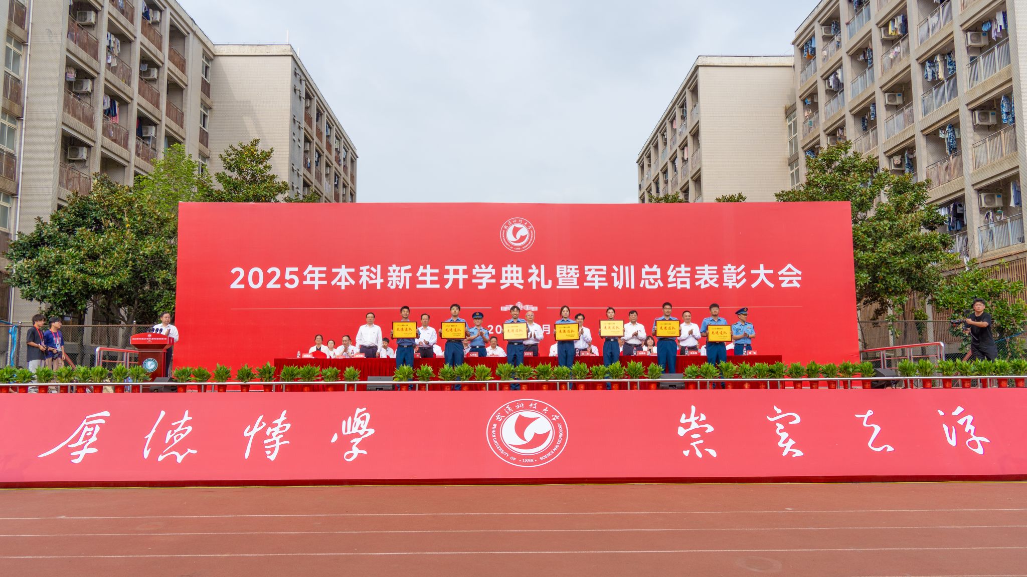 9月29日上午,太阳官网于南苑操场举行2025年本科新生开学典礼暨军训总结表彰大会。