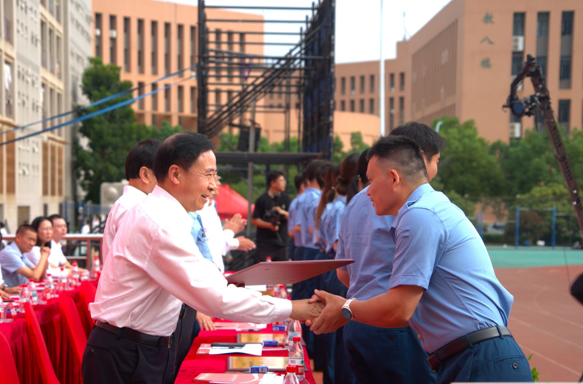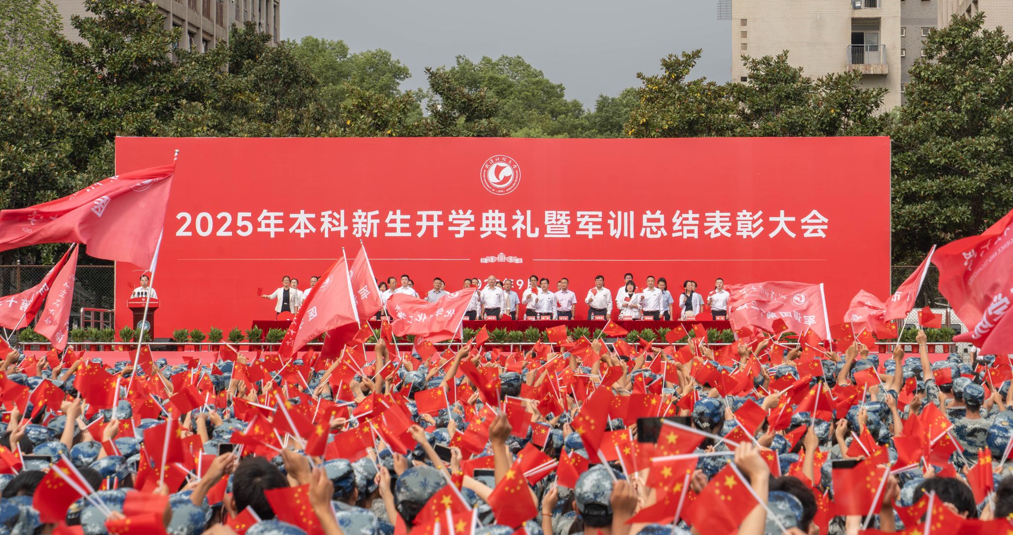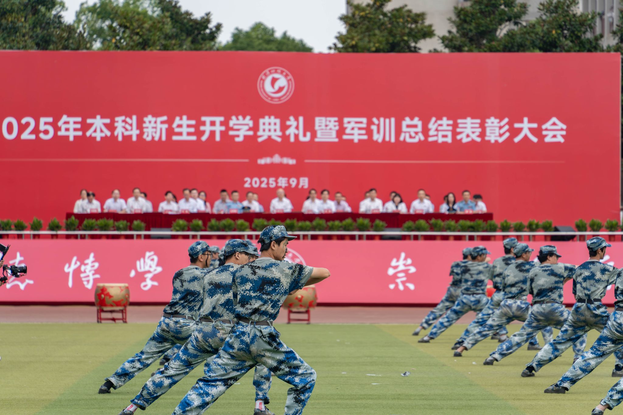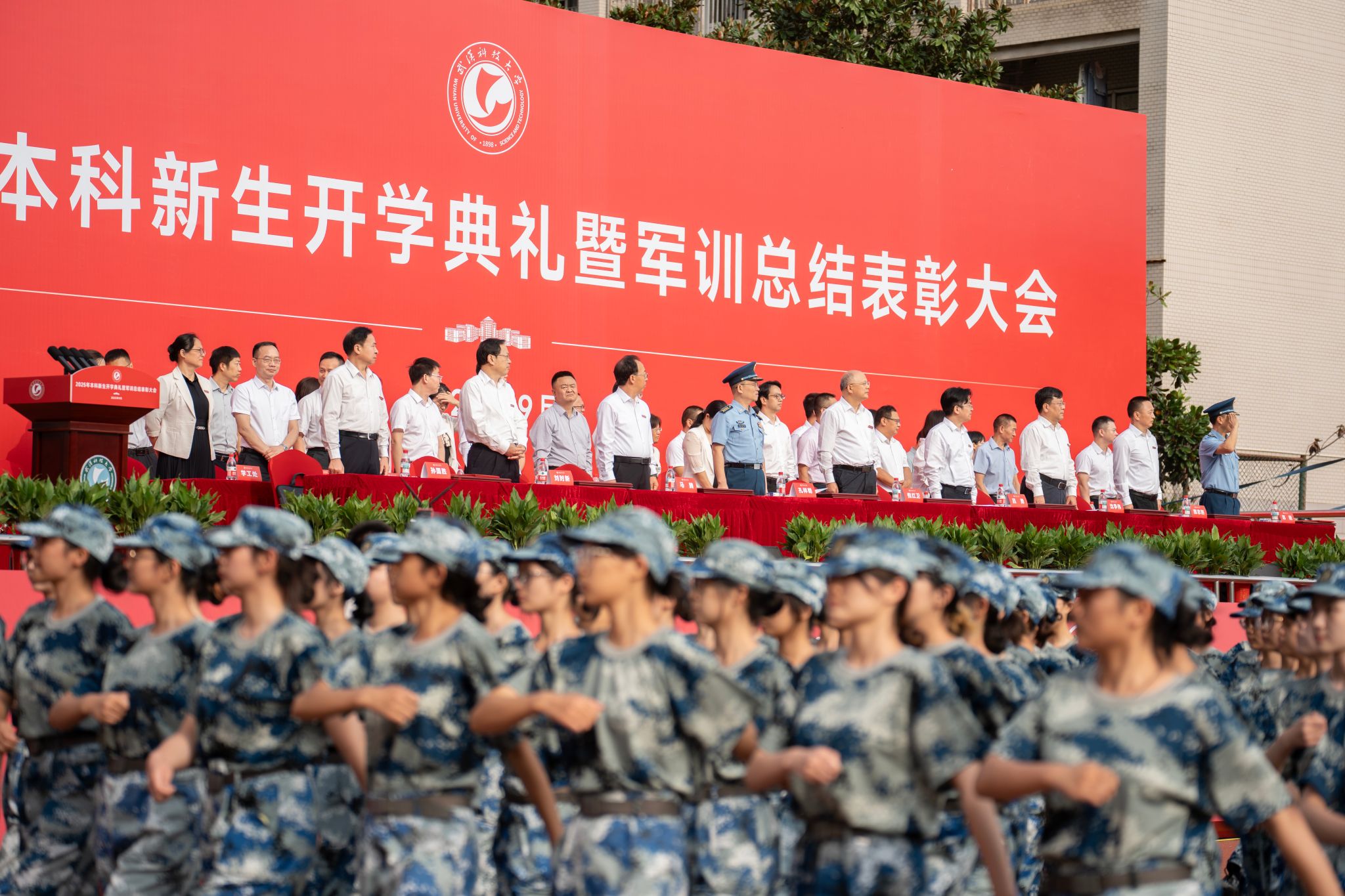 9月29日上午,太阳官网于南苑操场举行2025年本科新生开学典礼暨军训总结表彰大会。