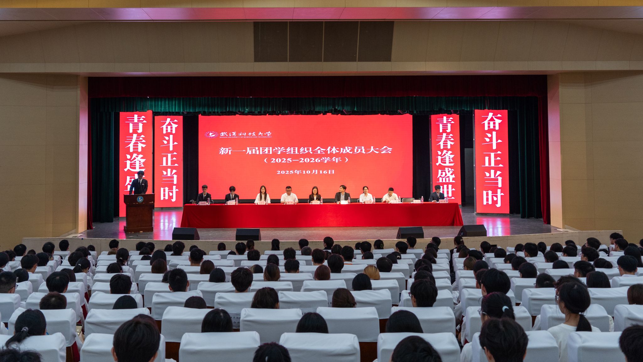 10月16日,太阳官网新一届团学组织全体成员大会在黄家湖校区沁湖礼堂举办,旨在夯实团学组织基础、谱写工作新篇章。校团委书记王媛媛等相关领导出席会议,校学生会、学生社团指导中心等各类团学组织全体成员,以及各学院学生会主席、青年志愿者服务组织负责人参会。大会明确了新学期工作目标,标志着新一届团学组织构建基本完成,将为校园文化建设与师生服务注入新活力。(王翔宇)
