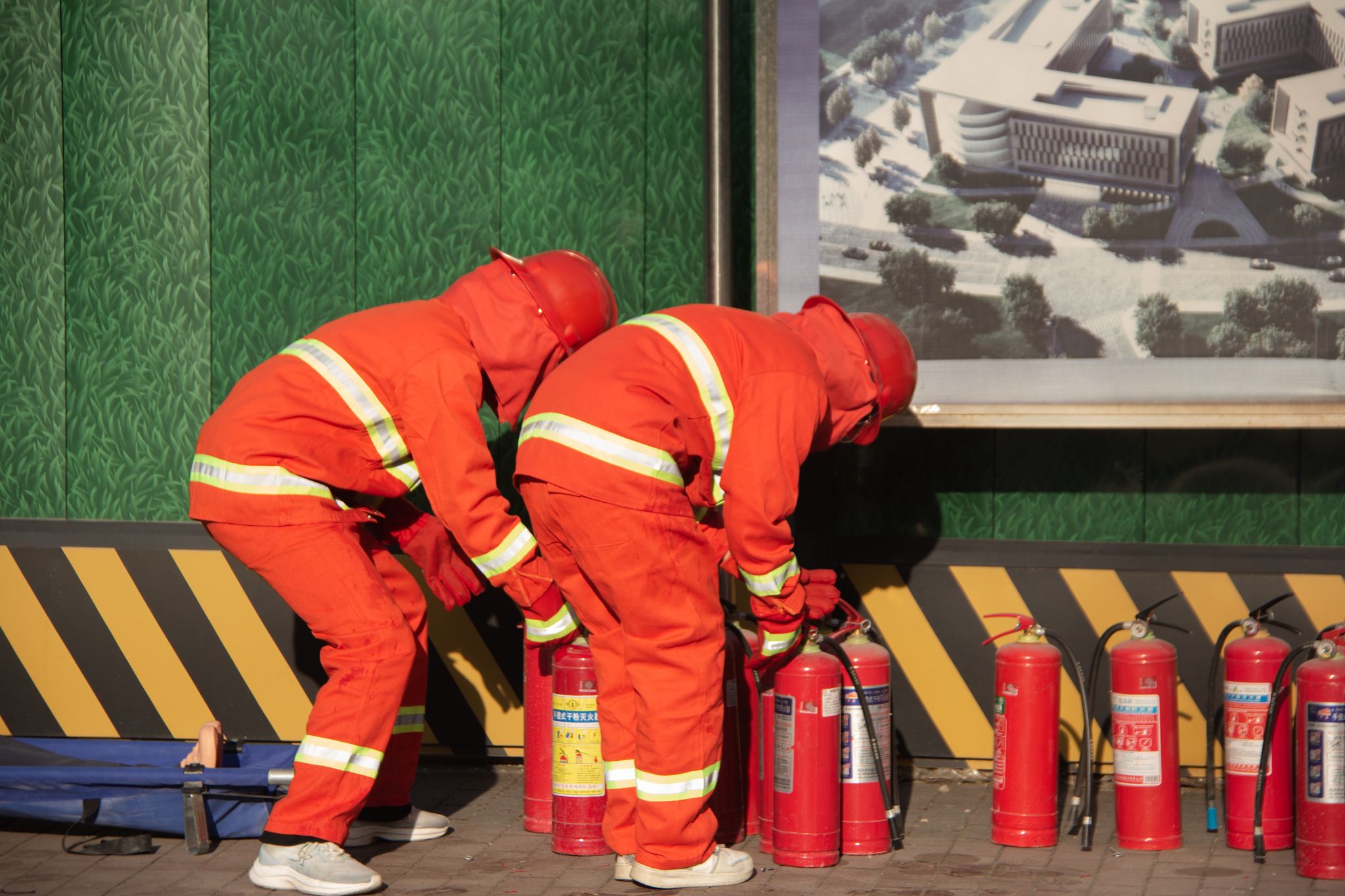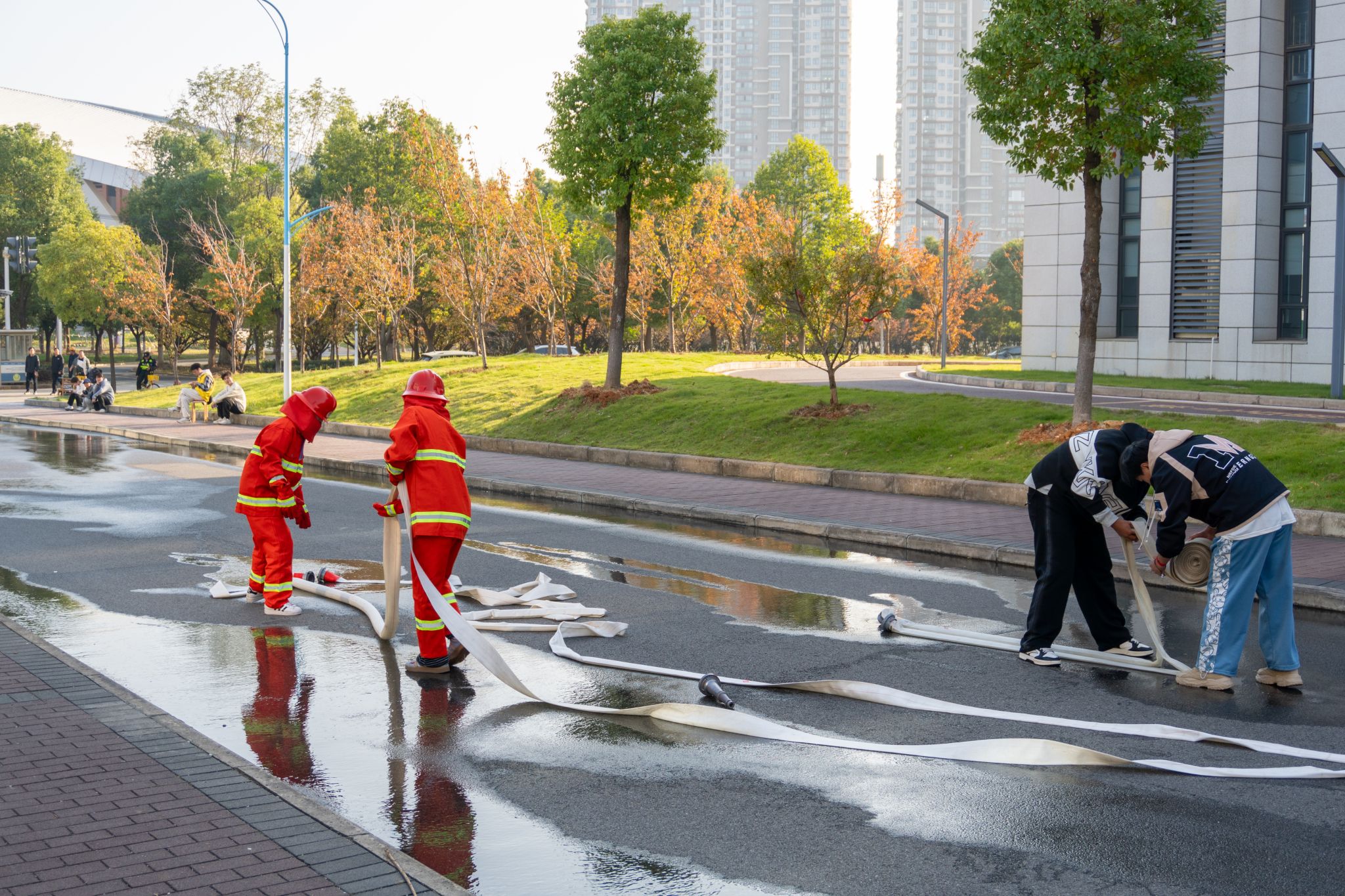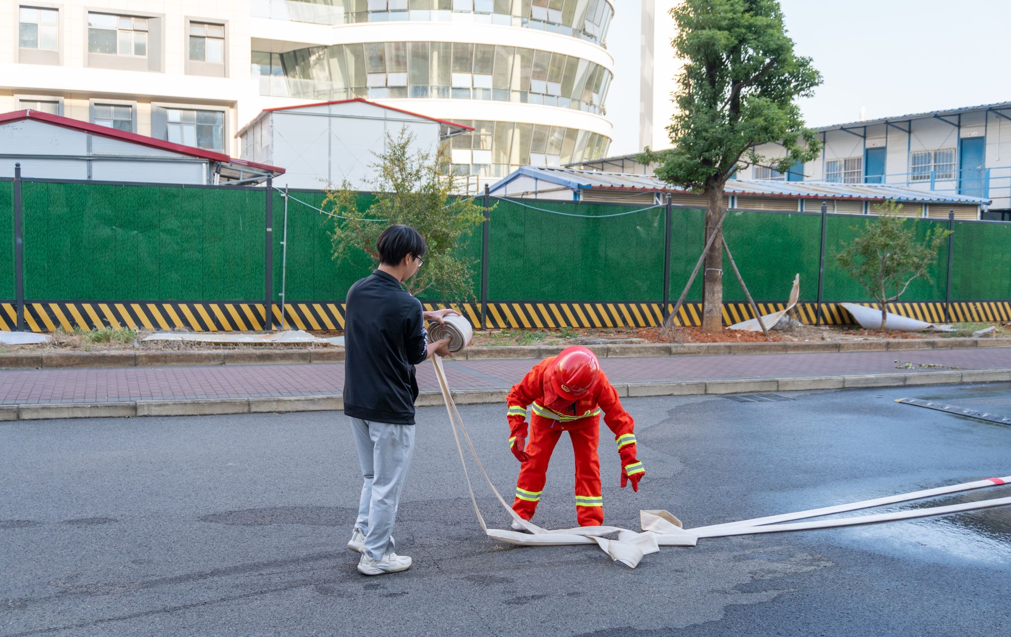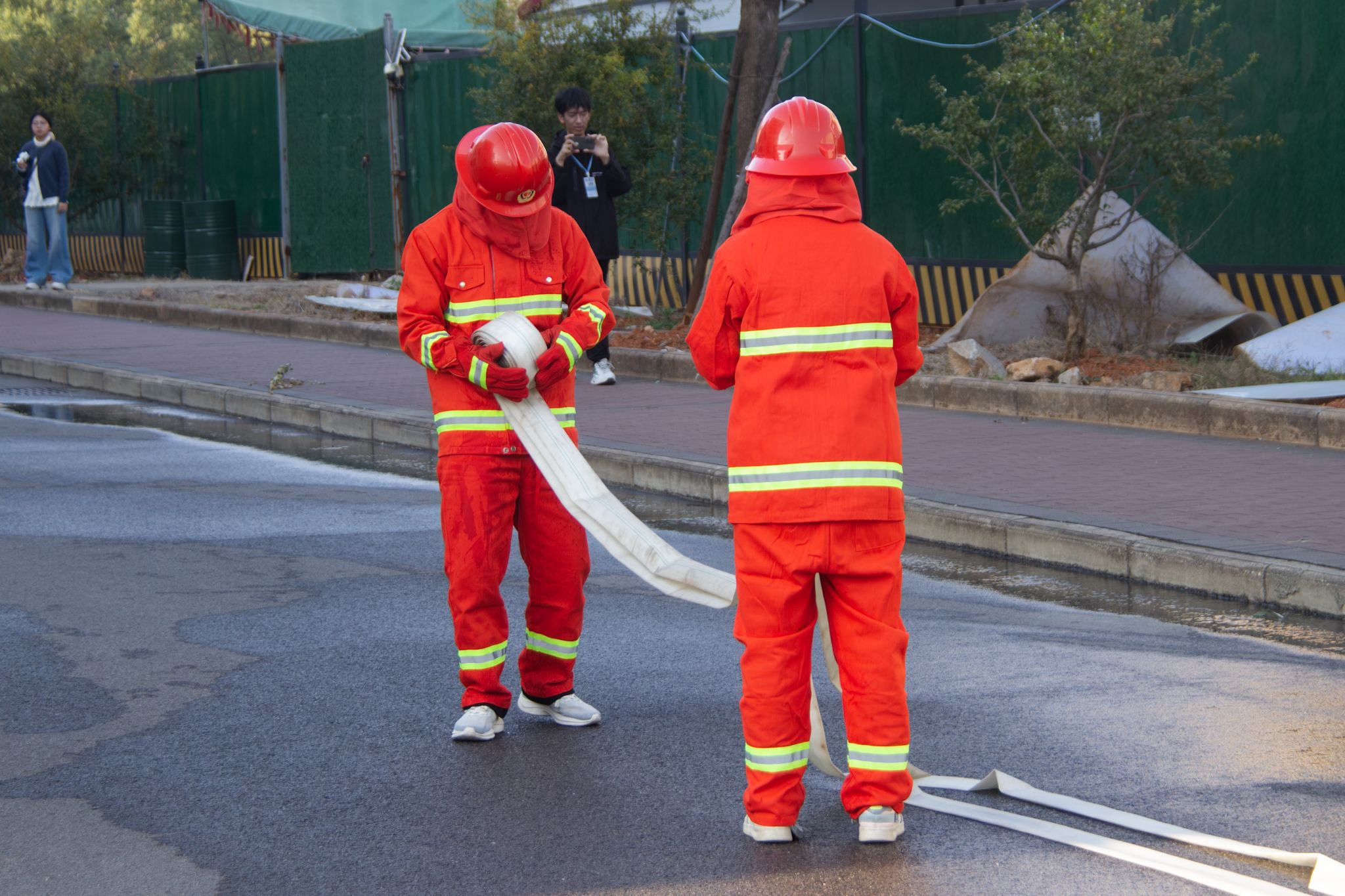 合力收回消防水带 一人平整一人卷 许雯雯摄