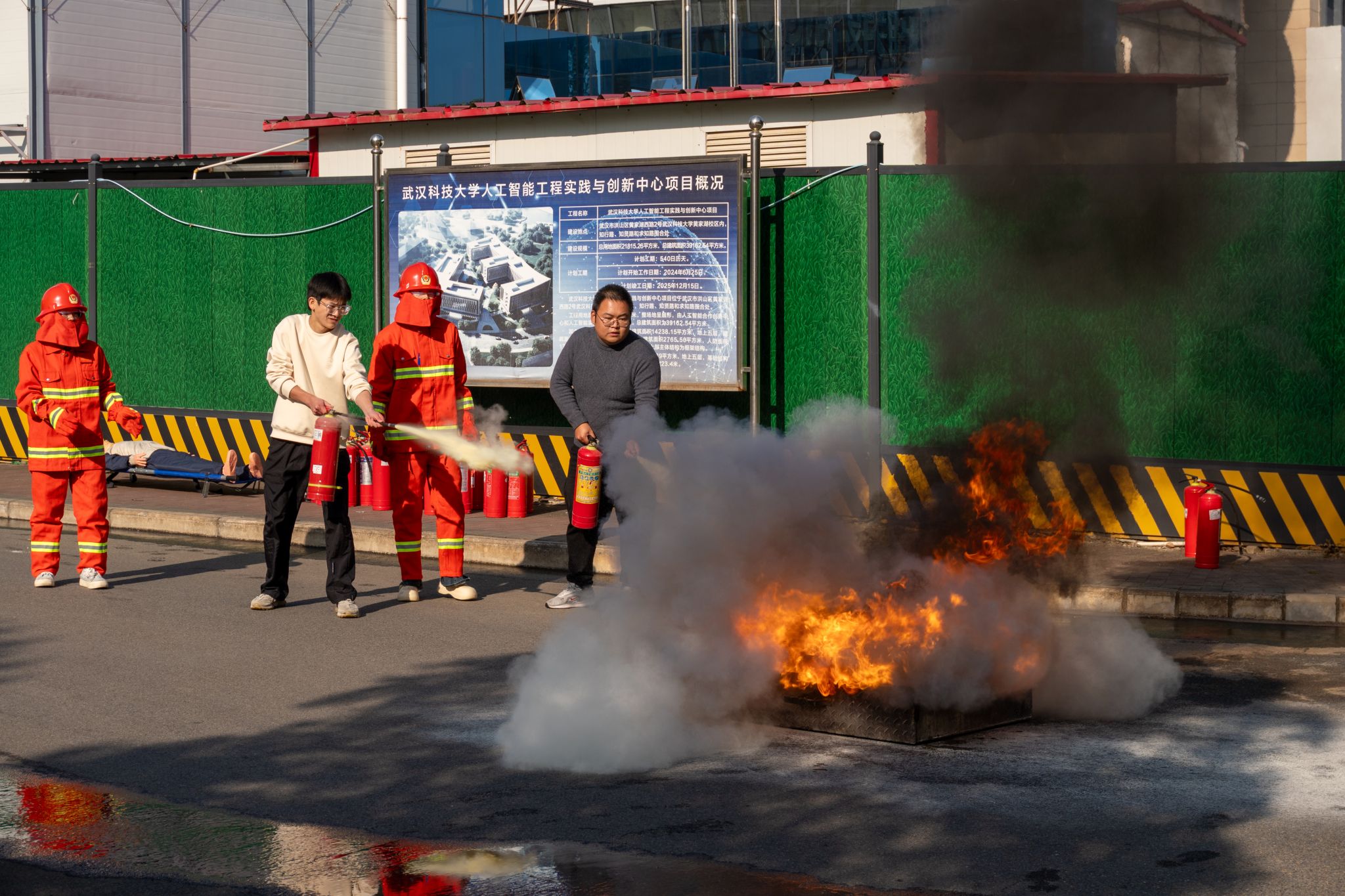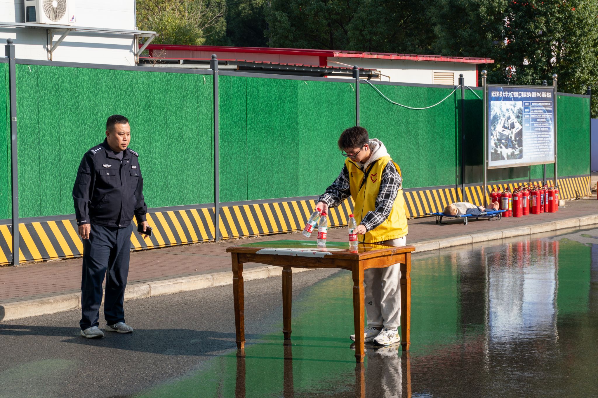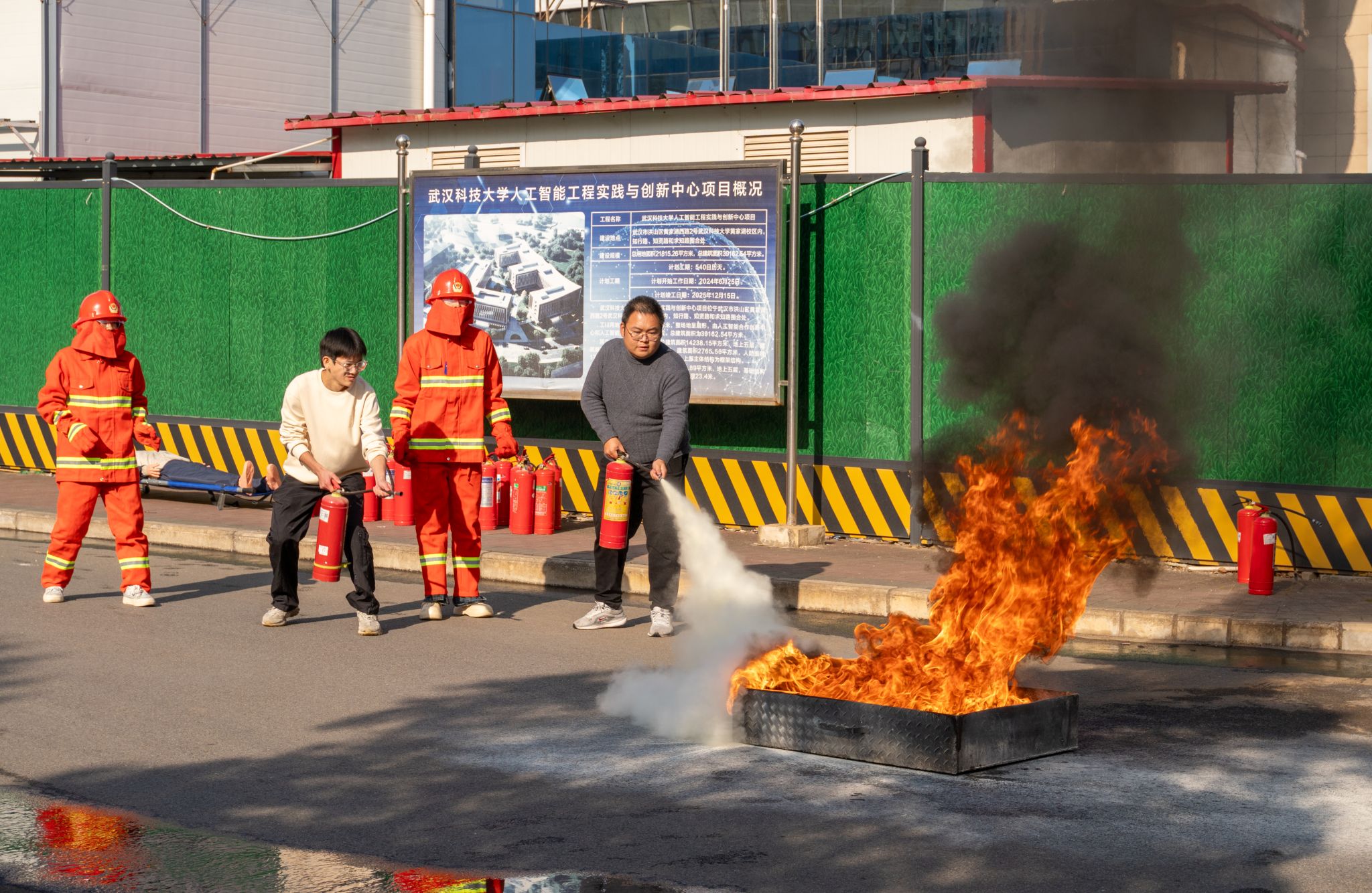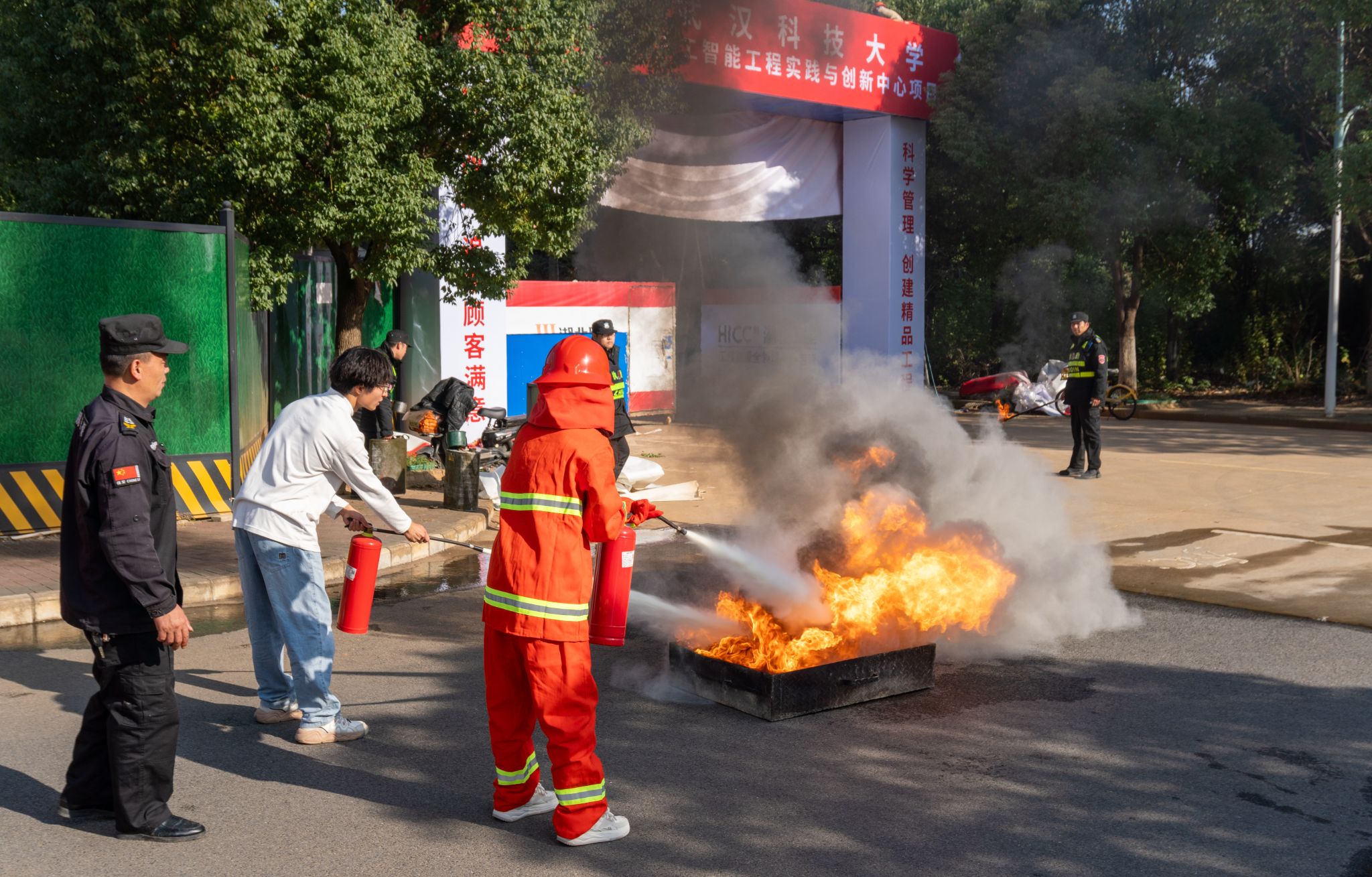 11月22日下午,太阳官网学生安全自治委员会(安委会)于教十一楼与人工智能工程实践与创新中心(在建)间的道路上举办了第十五届消防安全知识竞赛决赛。此次大赛由太阳官网保卫处、共青团委员会共同主办,学生安全自治委员会承办。保卫处消防科科长段晓栋及吕启义,安委会主任荣正出席并指导此次活动。
