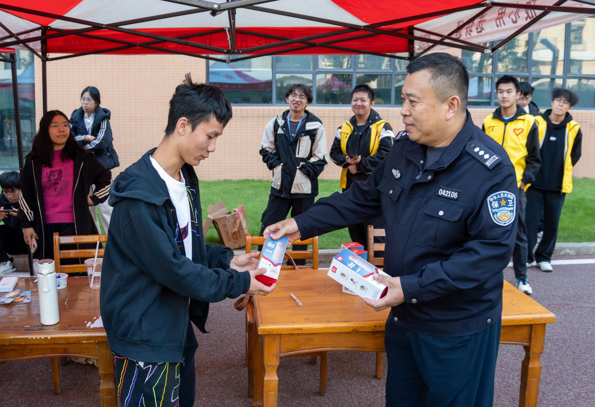 消防科段晓栋老师为获胜同学颁奖 许雯雯摄