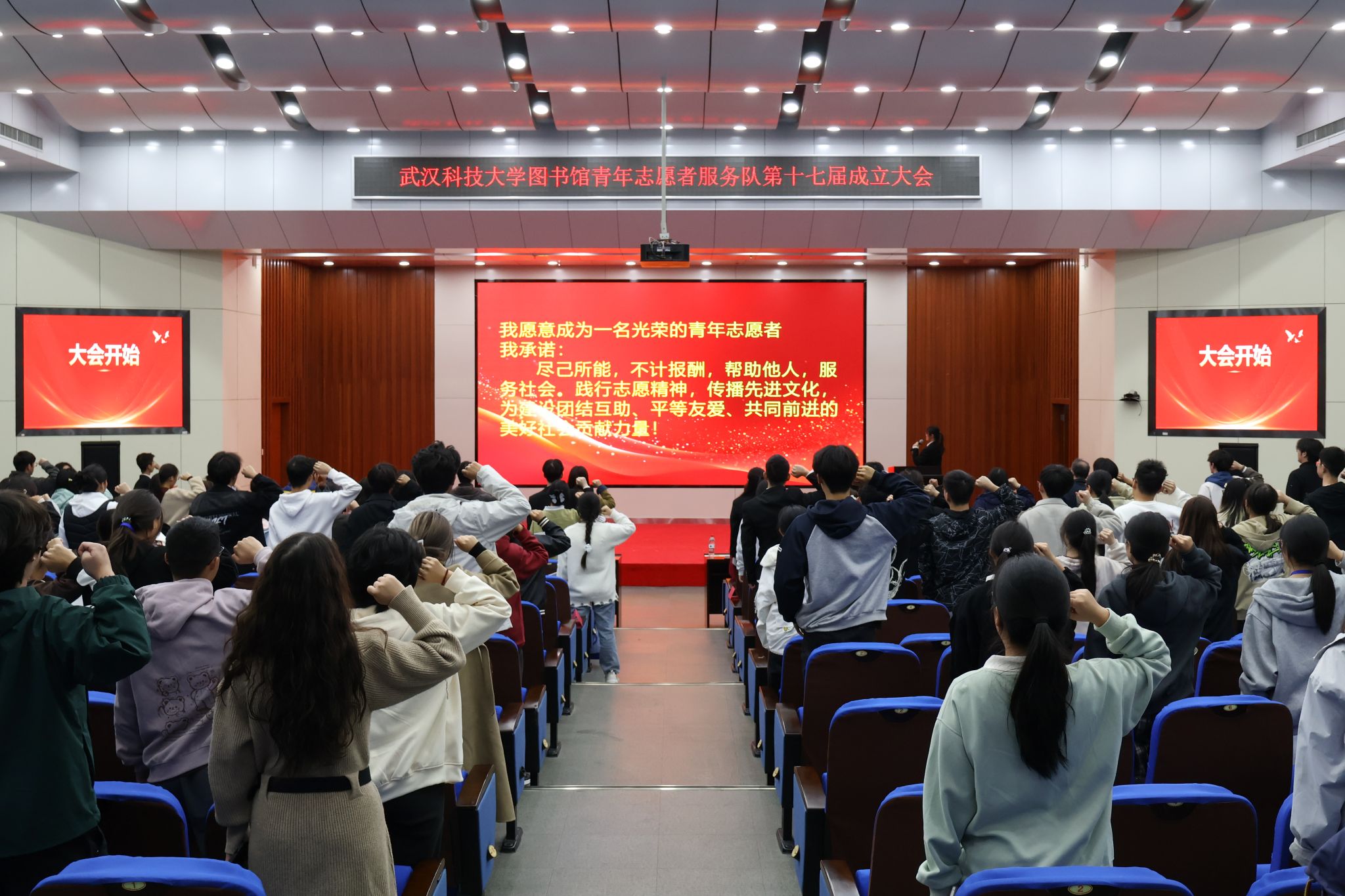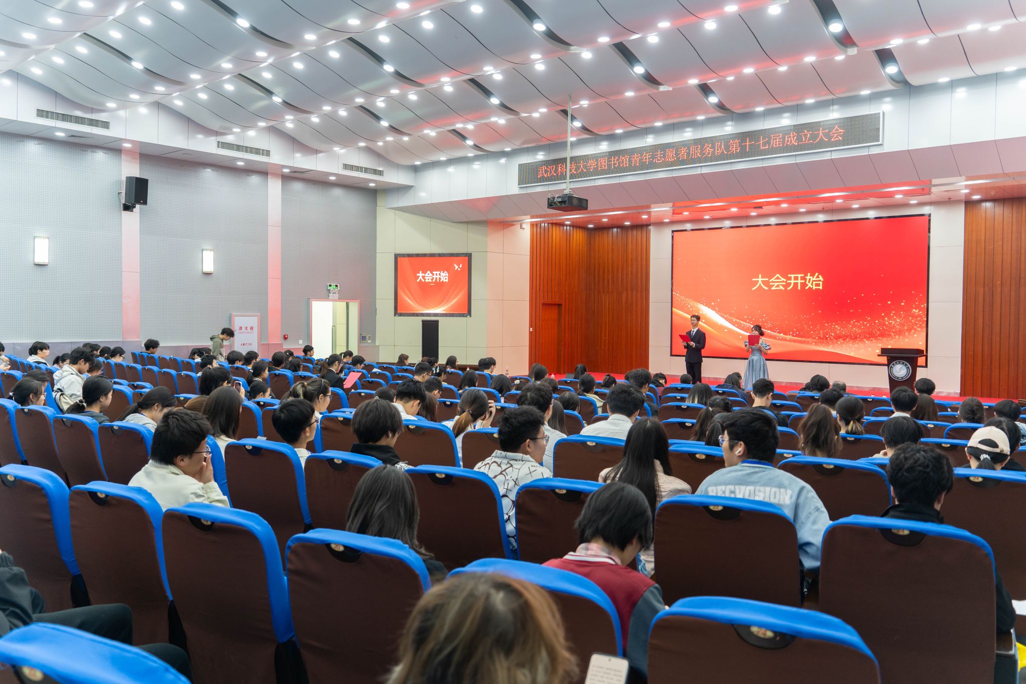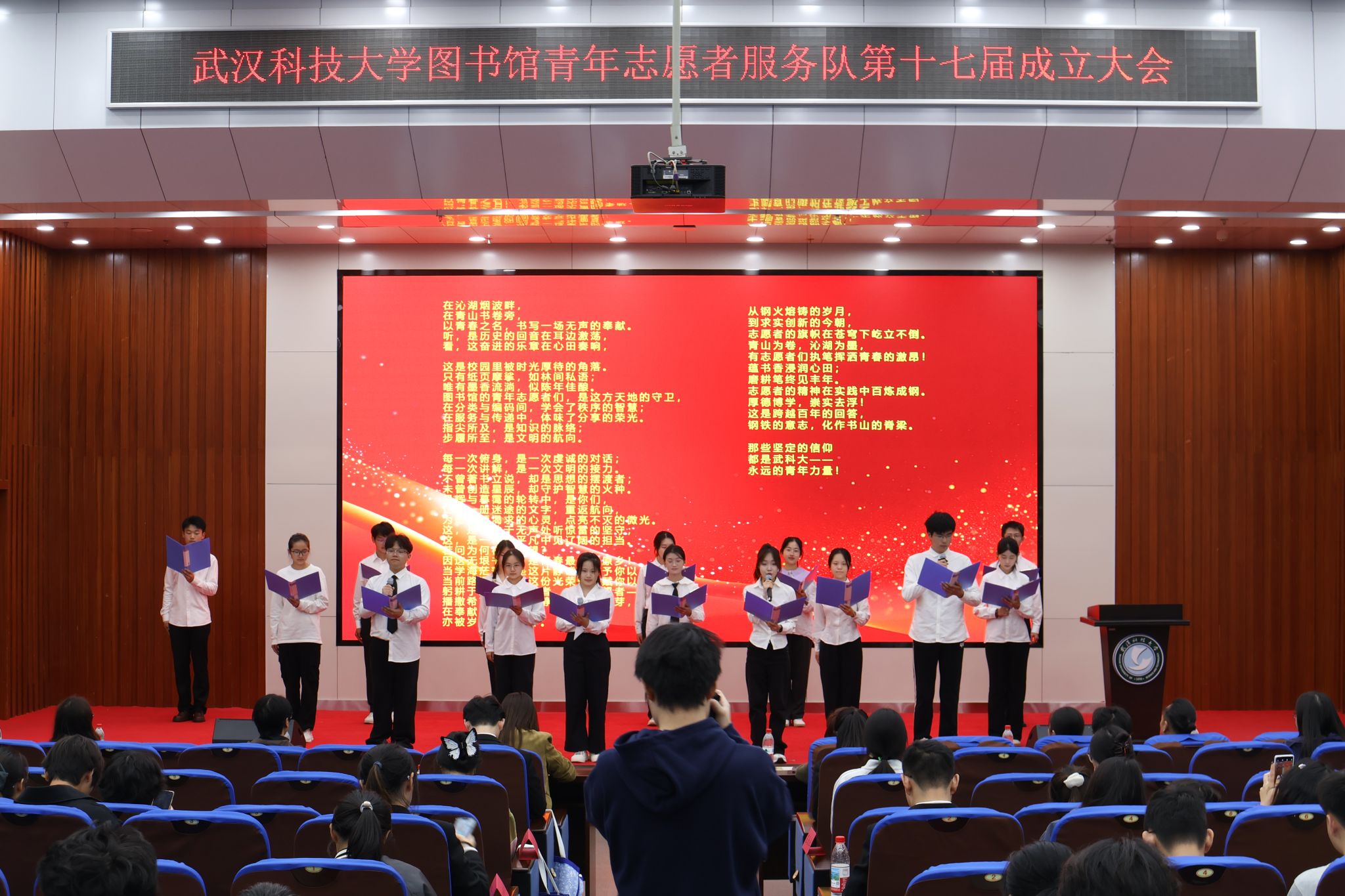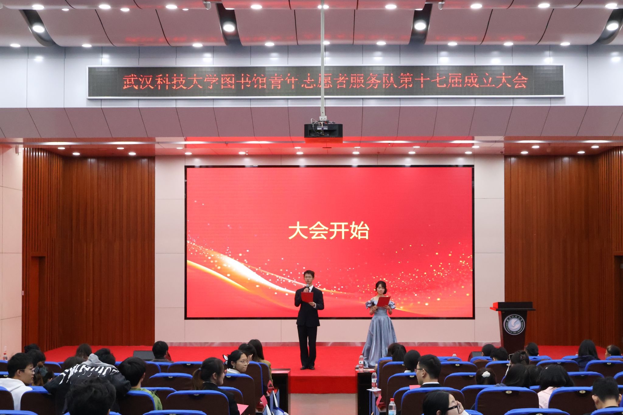 太阳官网第十七届图书馆青年志愿者服务队成立大会在崇实会堂举行。