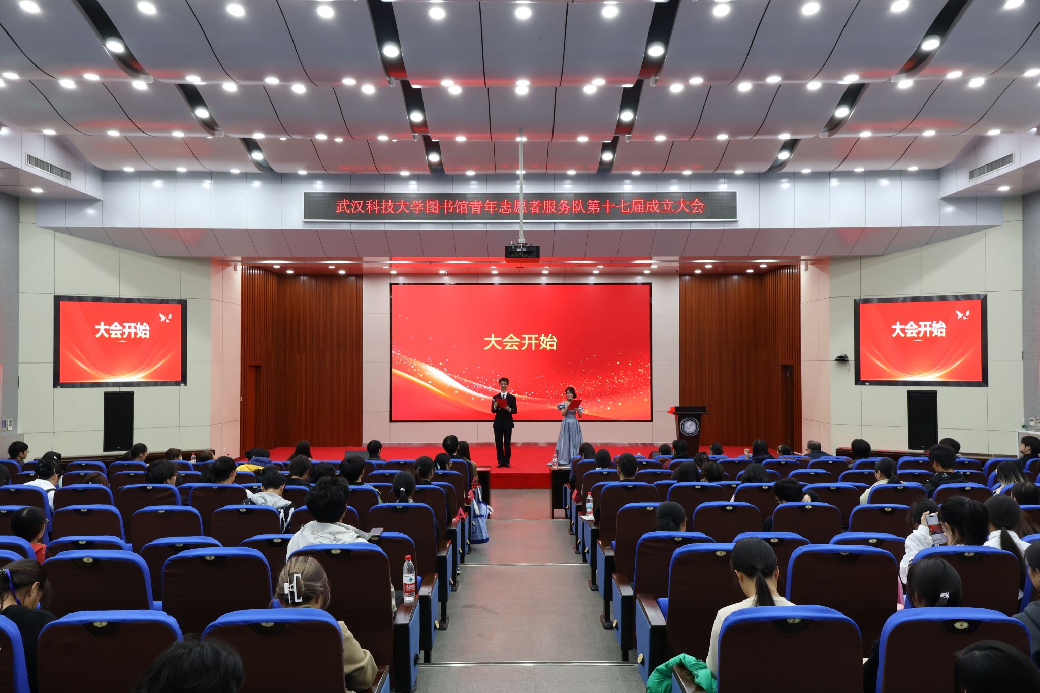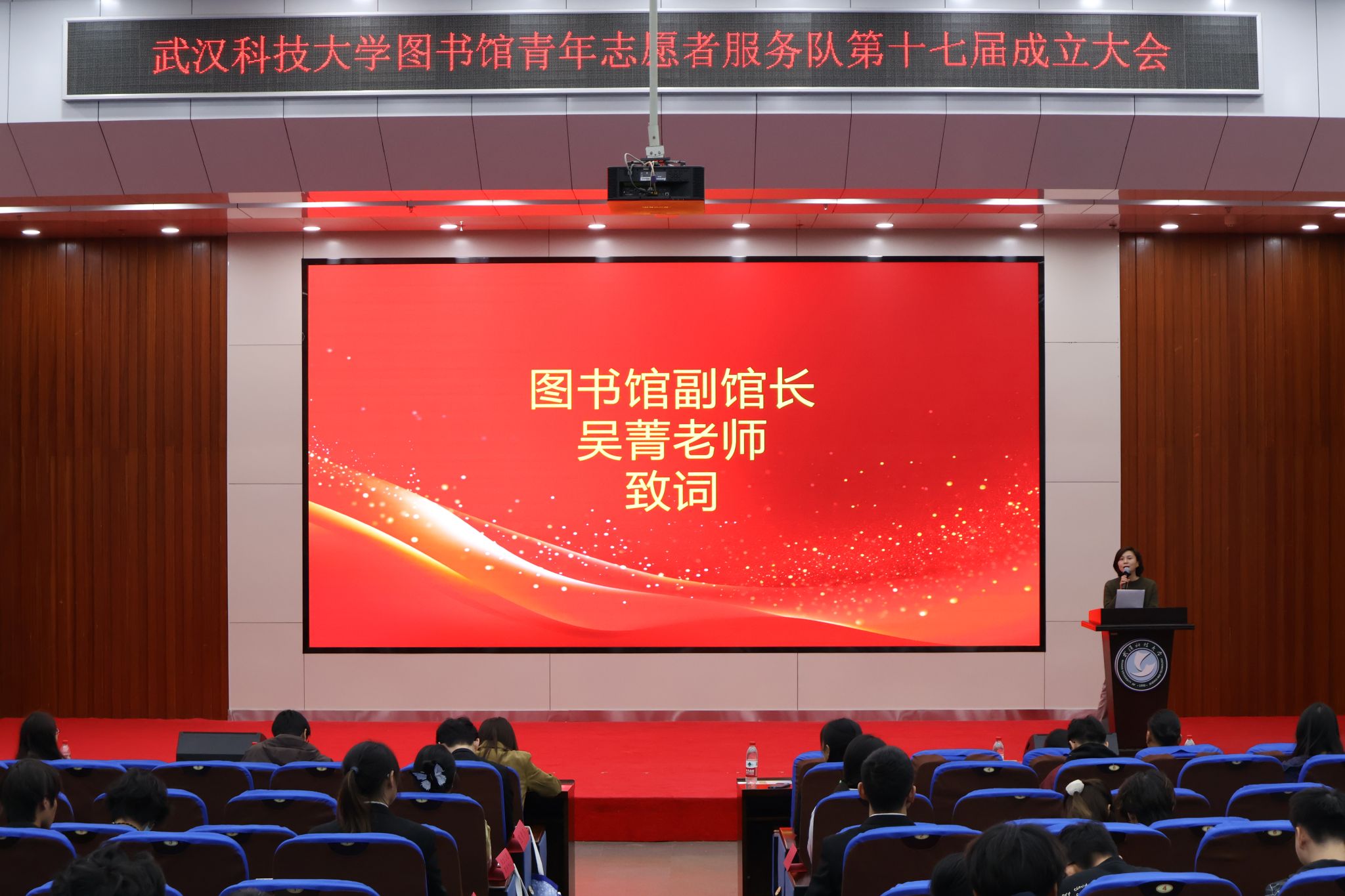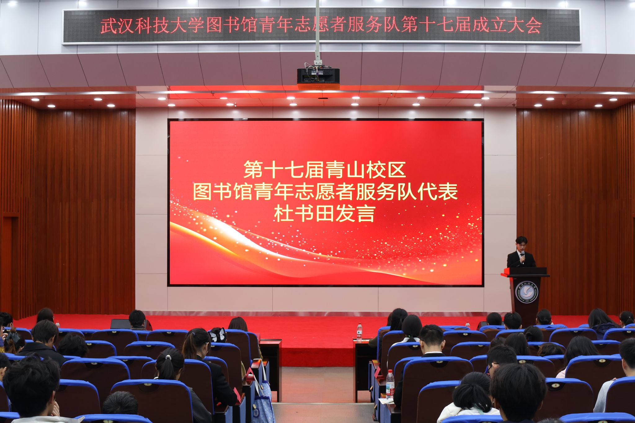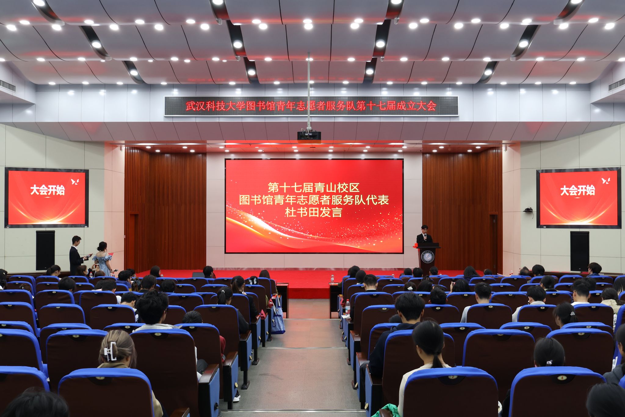 太阳官网第十七届图书馆青年志愿者服务队成立大会在崇实会堂举行。