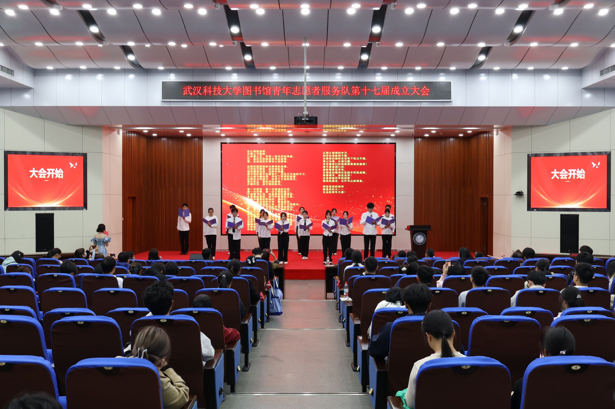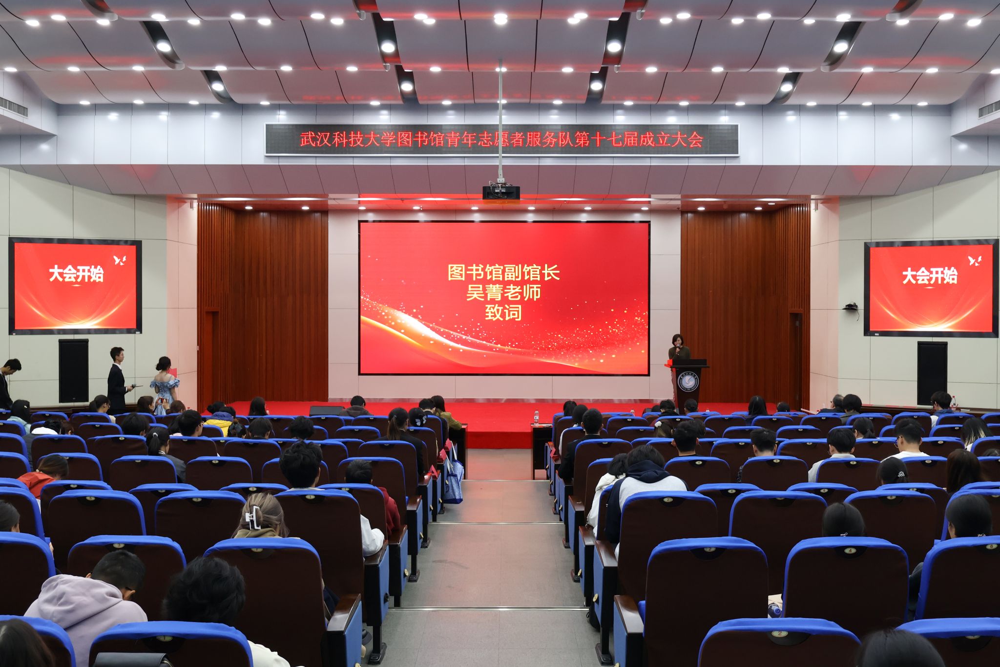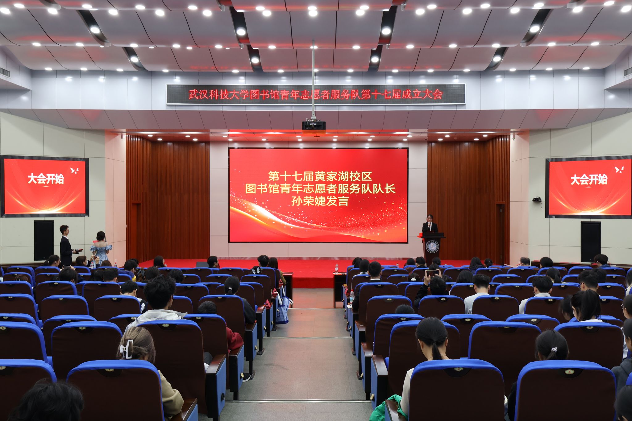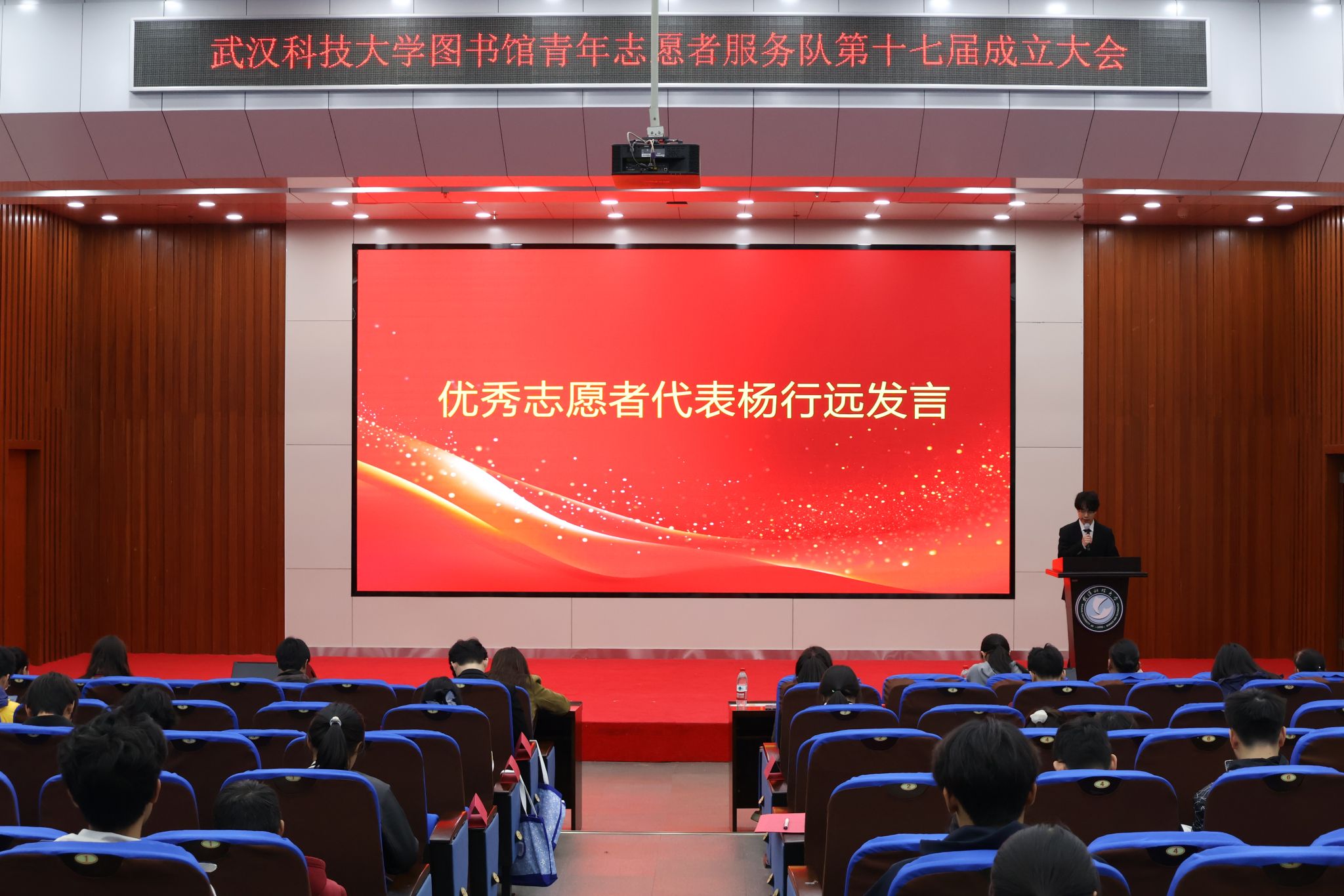 太阳官网第十七届图书馆青年志愿者服务队成立大会在崇实会堂举行。