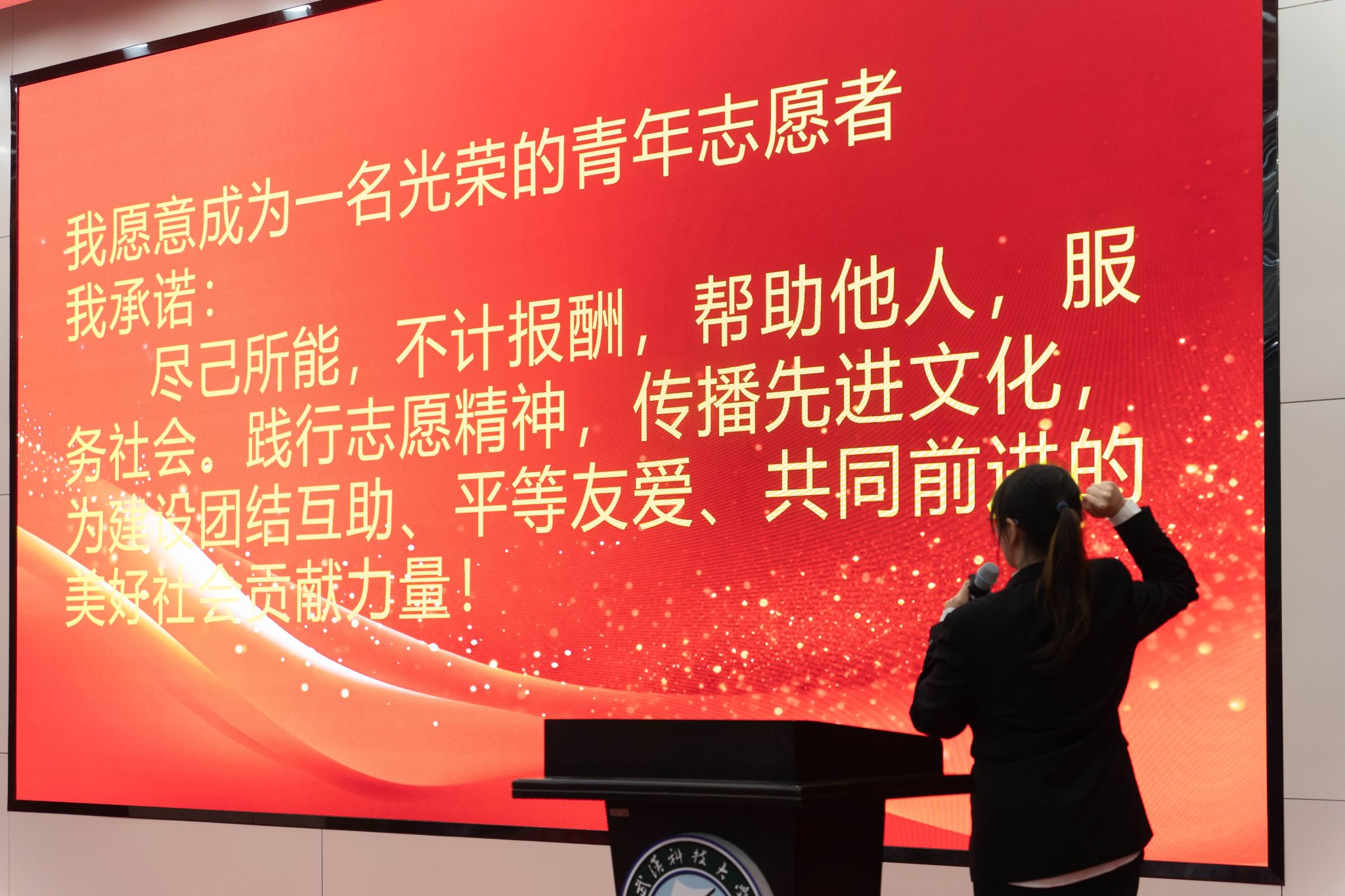 队长孙荣婕带领全体志愿者宣誓 李高摄