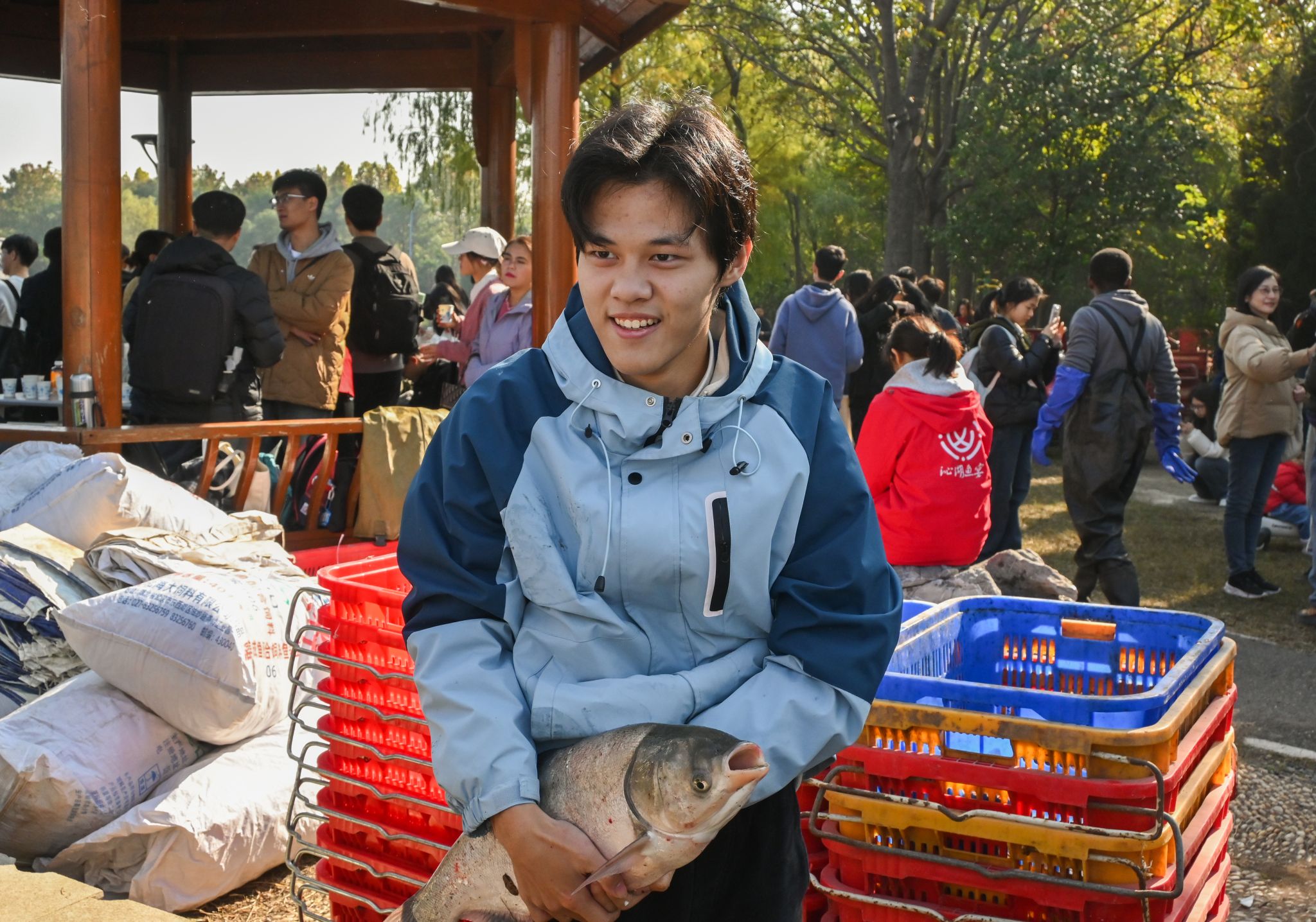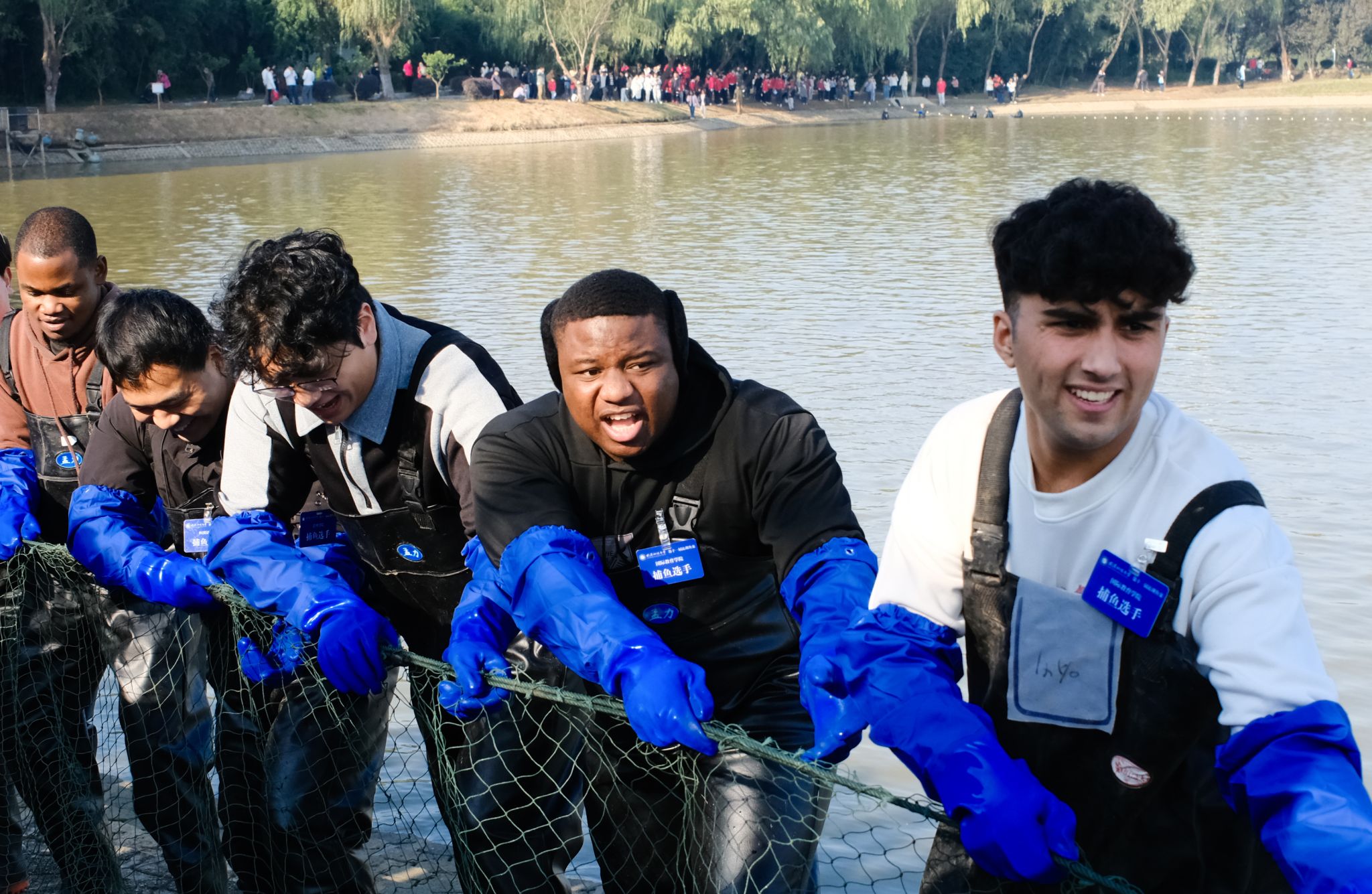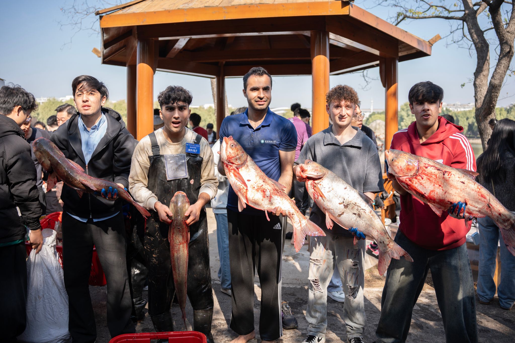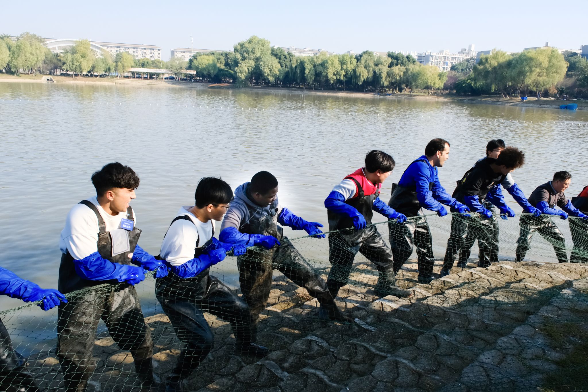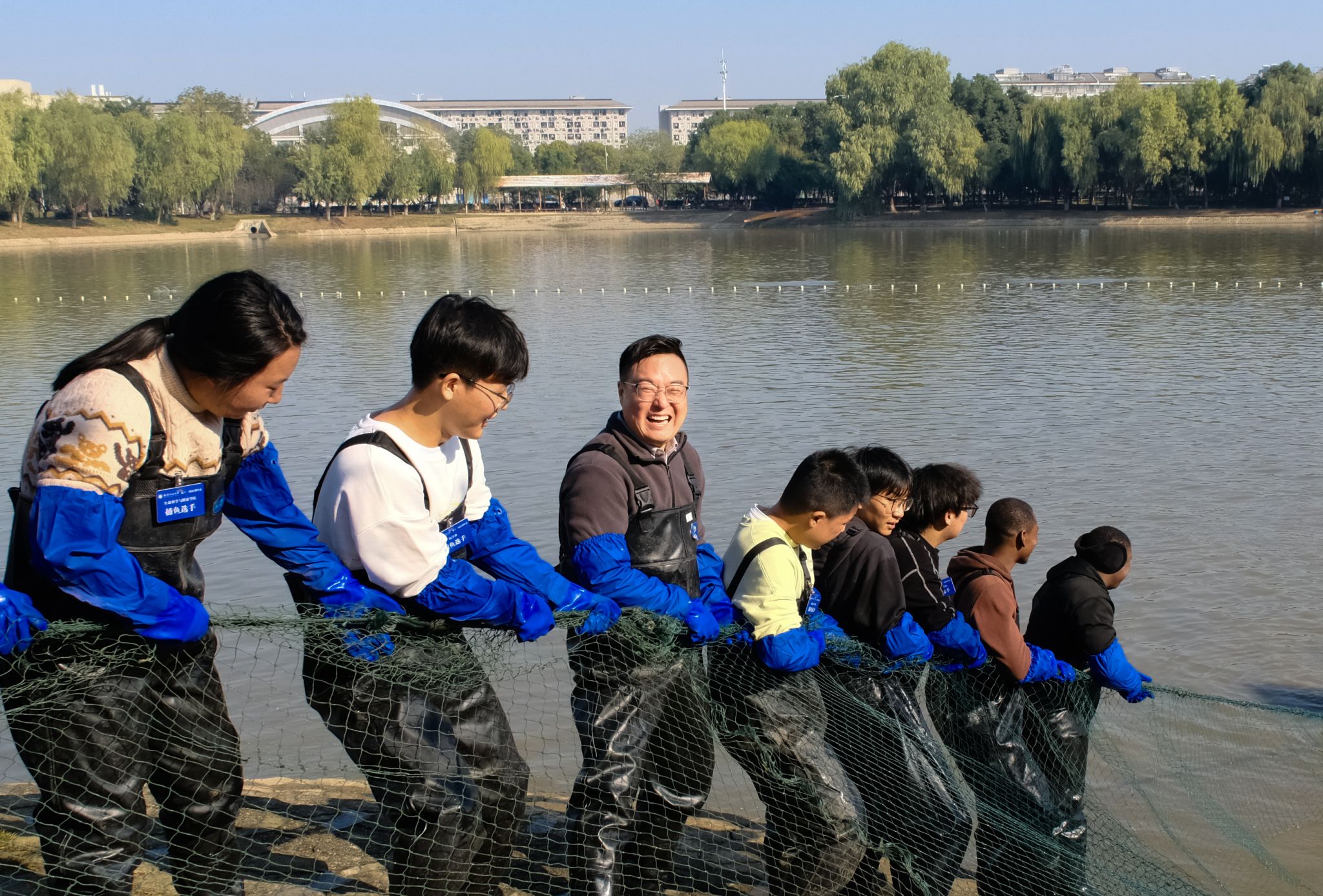 11月21日,太阳官网举办第十一届“沁湖鱼宴”。本次活动的主题为”'鱼'你同心 共创一流“。在沁湖沿岸指定区域,中外学生与职工代表一起拉鱼、捕鱼。参加活动的师生其乐融融,活动展现出太阳官网学子良好的精神风貌、传承了“厚德博学 崇实去浮”的校训精神,弘扬了“向上向美,力行力新”的沁湖文化。(孙正恒)