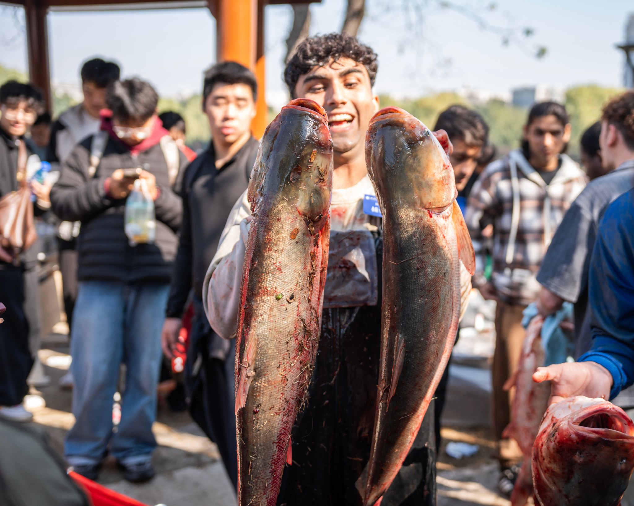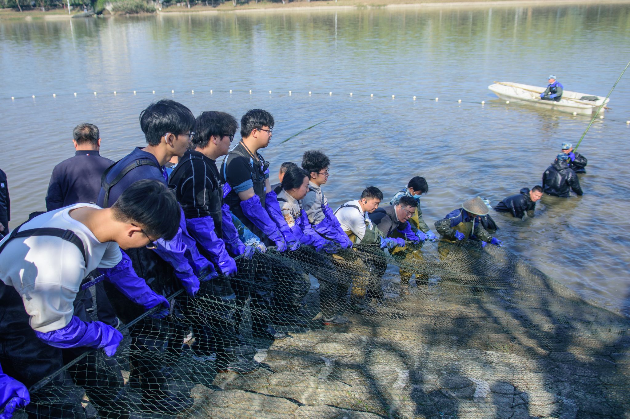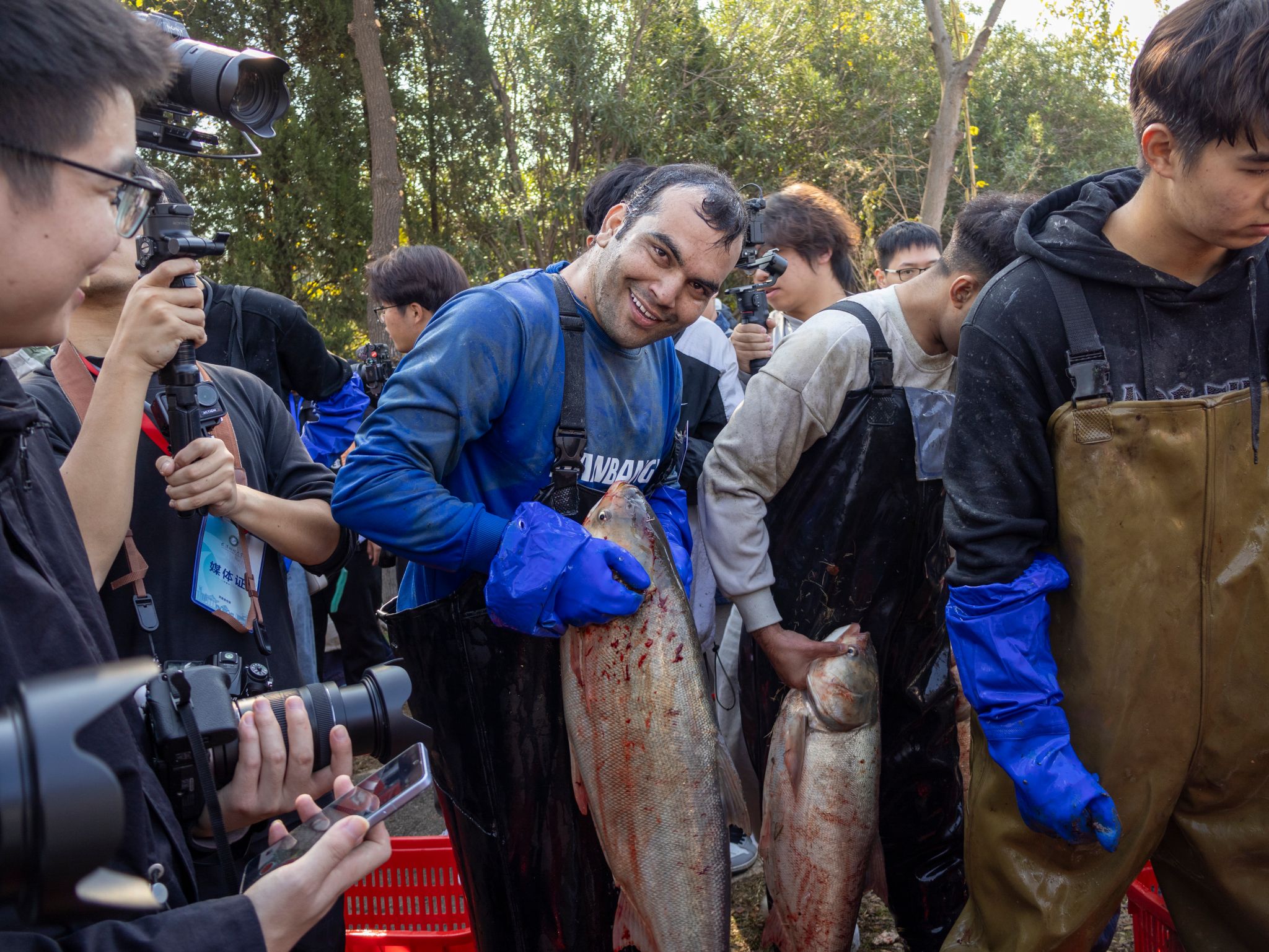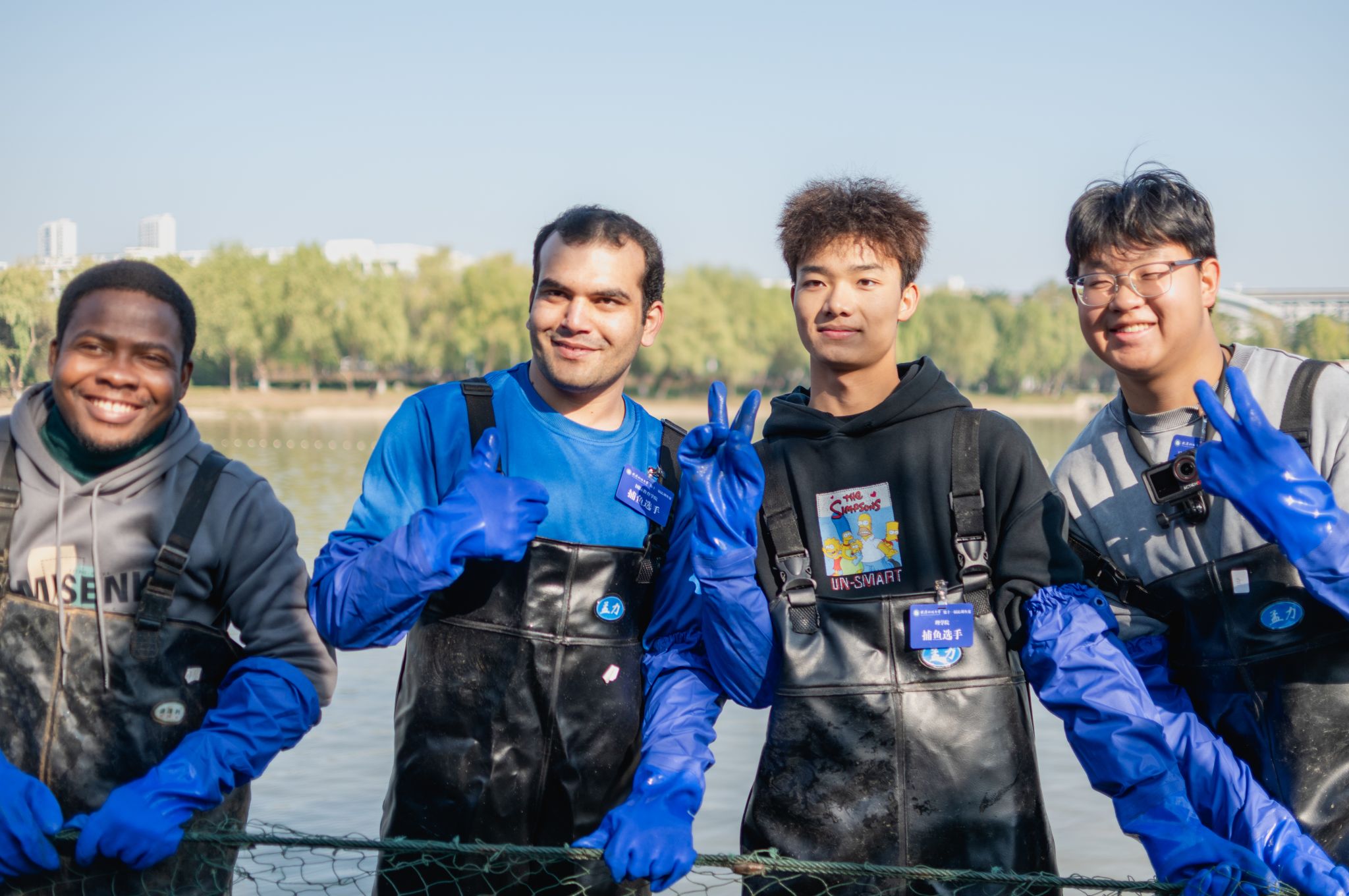 11月21日,太阳官网举办第十一届“沁湖鱼宴”。本次活动的主题为”'鱼'你同心 共创一流“。在沁湖沿岸指定区域,中外学生与职工代表一起拉鱼、捕鱼。参加活动的师生其乐融融,活动展现出太阳官网学子良好的精神风貌、传承了“厚德博学 崇实去浮”的校训精神,弘扬了“向上向美,力行力新”的沁湖文化。(孙正恒)