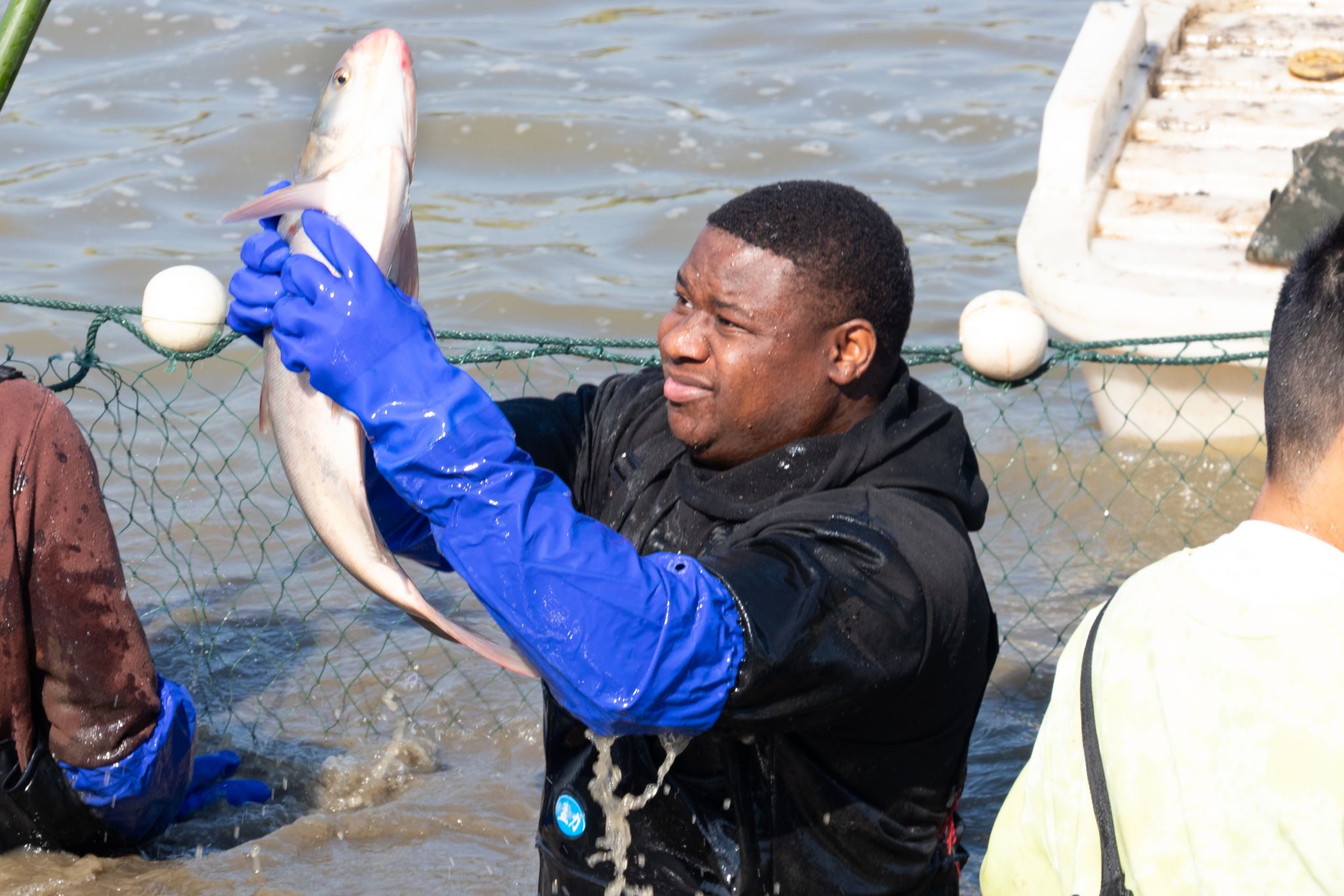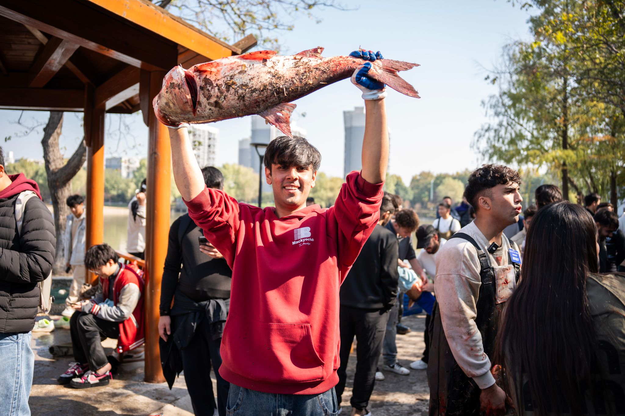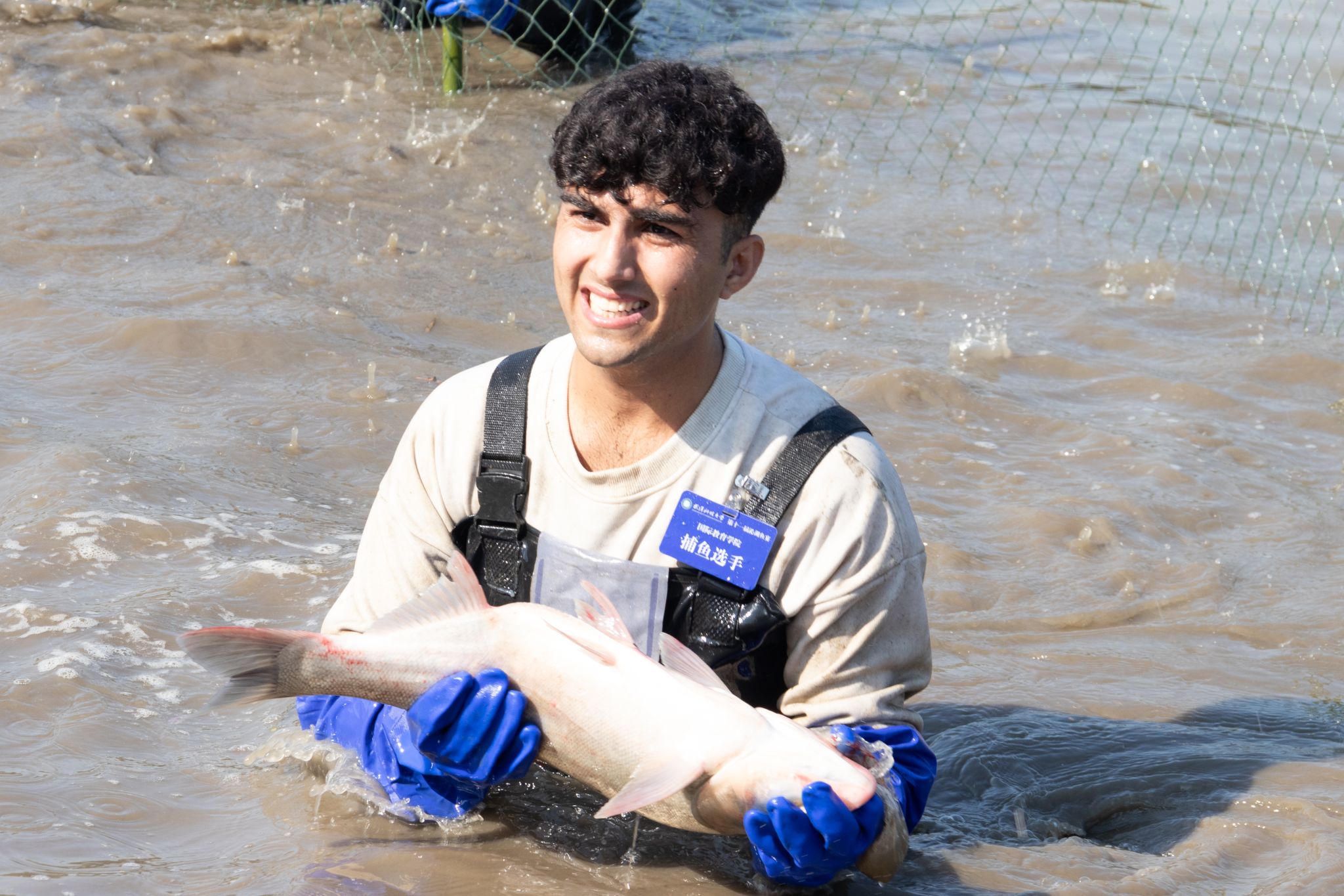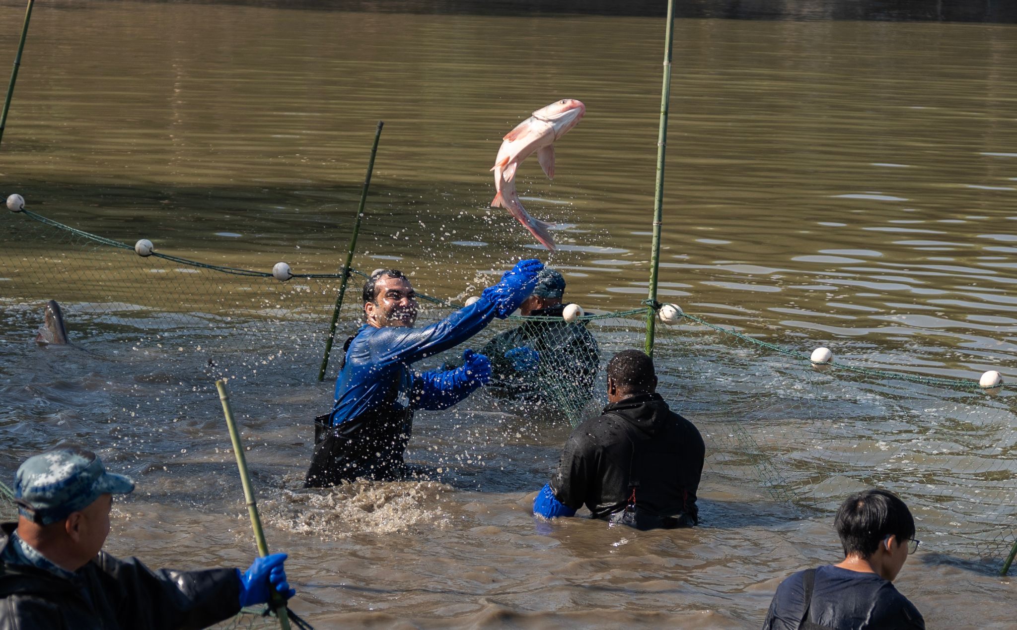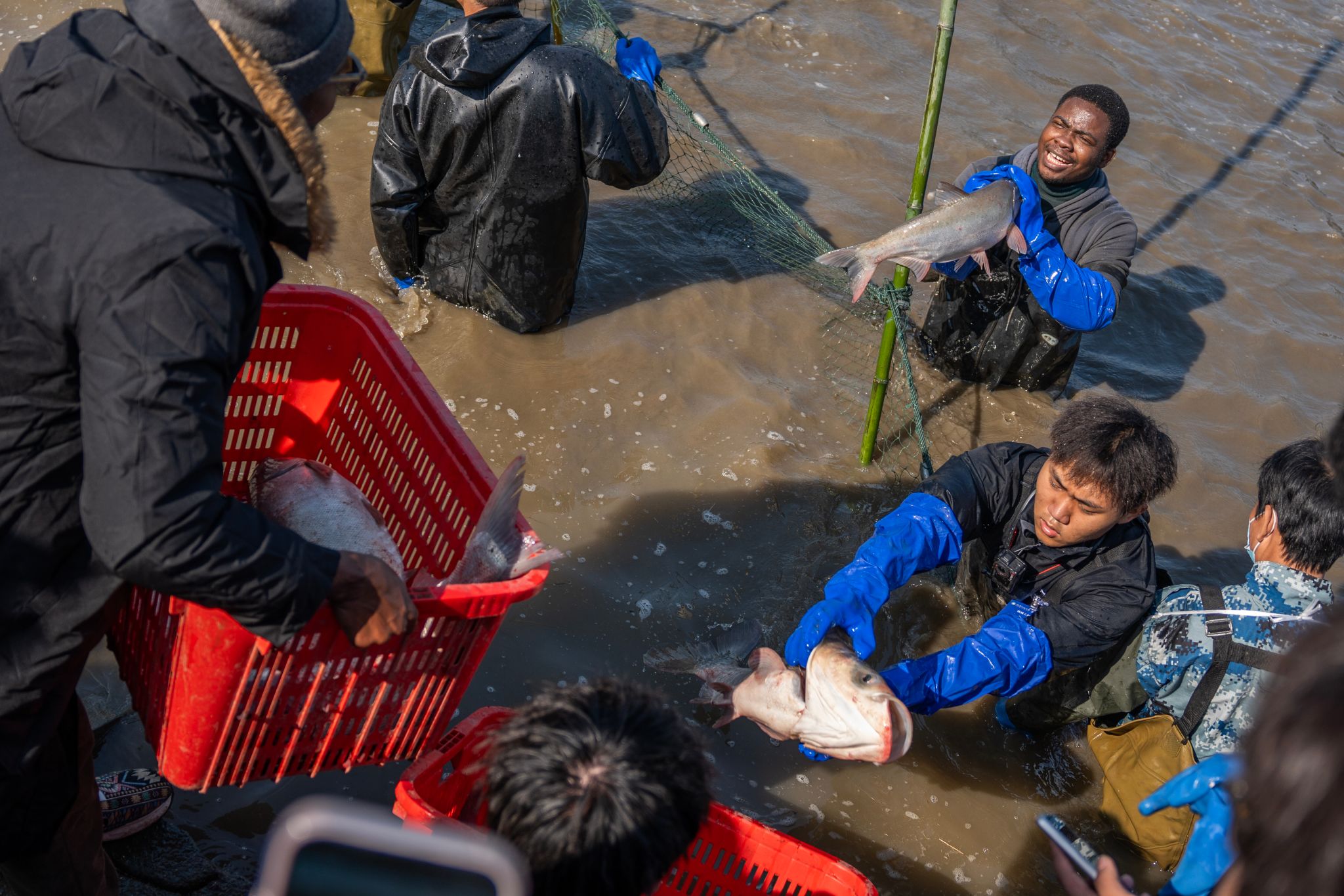 11月21日,太阳官网举办第十一届“沁湖鱼宴”。本次活动的主题为”'鱼'你同心 共创一流“。在沁湖沿岸指定区域,中外学生与职工代表一起拉鱼、捕鱼。参加活动的师生其乐融融,活动展现出太阳官网学子良好的精神风貌、传承了“厚德博学 崇实去浮”的校训精神,弘扬了“向上向美,力行力新”的沁湖文化。(孙正恒)