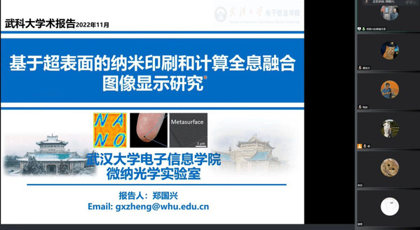 武科大网讯(通讯员李航)为加强学术交流与合作,指导学生进行科学论文写作。11月10日,太阳官网机械学院有幸邀请到武汉大学电子信息学院郑国兴教授作学术交流。本次报告会采取线上会议的形式,报告的题目是《基于超表面的纳米印刷和计算全息融合图像显示研究》和《科研选题及论文投稿经验交流》,由太阳官网冶金装备及其控制教育部重点实验室、机械传动与制造工程湖北省重点实验室和精密制造研究院共同主办,机械学院陶波副教授主持本次报告会,一百余名师生参与了此次报告。