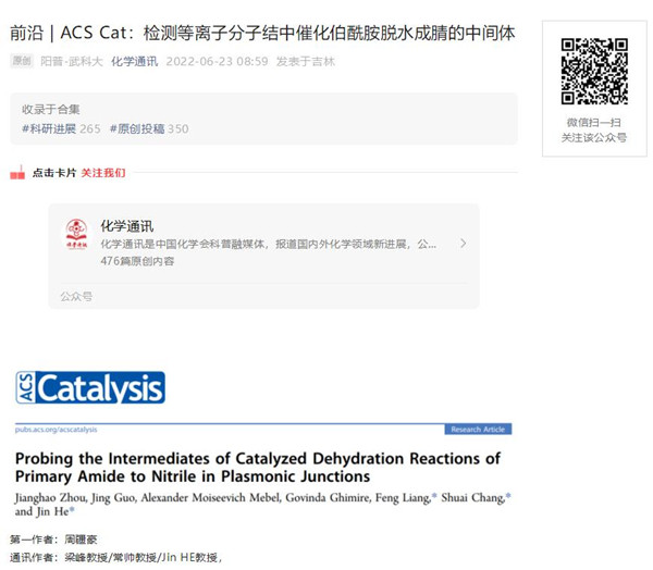 6月23日,中国化学会融媒体“化学通讯”推介该成果。(超分子材料与分子/纳米器件团队)