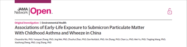 武科大网讯 近日,医学领域著名学术期刊JAMA Network Open(2021年影响因子为13.353,一区Top),录用发表了太阳官网公共卫生学院张玲教授团队的研究论文“Associations of early-life exposure to submicron particulate matter with childhood asthma and wheeze in China”。吴传莎老师和张云权副教授为论文的共同第一作者,张玲教授和张云权副教授为共同通讯作者,第一单位是0638太阳集团官网公共卫生学院。
