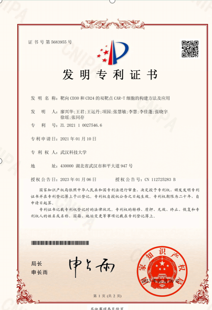 武科大网讯 (记者梁绮琪)“霍奇金淋巴癌是青年人中最常见的恶性肿瘤之一,其复发率高达30%,且目前的治疗方式较为单一,疗效不佳。”来自生命科学与健康学院的研究团队队长祁菲菲介绍道。该团队自2018年起着手研究CAR-T细胞免疫疗法,并寻找到CD24和CD30双靶点,五年后成功申请全球首个CD24-CD30双靶点的CAR-T免疫疗法的专利授权,并在后期计划与武汉波睿达生物科技有限公司合作,开展临床试验。
