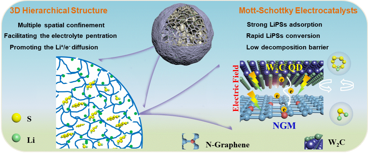 图4 莫特-肖特基电催化剂增强硫电化学转化机制图
