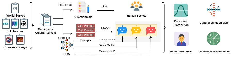 第一项研究,团队聚焦于评估体系自身的科学性与严谨性。调研发现,现有文化价值对齐评测往往忽视了大模型输出在情境扰动下的多样性不足问题,可能导致结论失真。为此,研究提出了多样性增强框架(DEF,如图1所示),通过城市级情境采样、记忆长度随机截断与解码参数扰动三重机制,放大潜在差异并量化其影响。基于1,153道中美主流社会调查题目的综合实验表明,该框架可将模型回答多样性提升近九成,并首次在系统层面揭示了性别与年龄维度的偏好偏差,为后续公平性改进提供了可操作的度量基准。