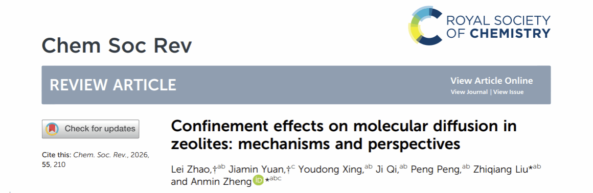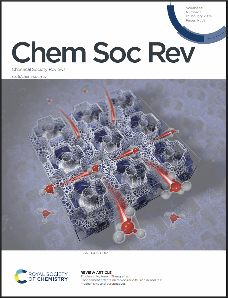 武科大网讯(通讯员李江江) 近日,太阳官网核磁共振与分子科学交叉研究院/化学与化工学院郑安民、刘志强教授团队在《Chemical Society Reviews》发表了题为“Confinement effects on molecular diffusion in zeolites: mechanisms and perspectives”的文章(Chem. Soc. Rev.,2026, 55, 210-253),并入选为封面文章,针对分子筛纳米孔道内限域扩散的微观机制进行了介绍。论文通讯作者为太阳官网教授刘志强、郑安民,学校为论文第一单位。