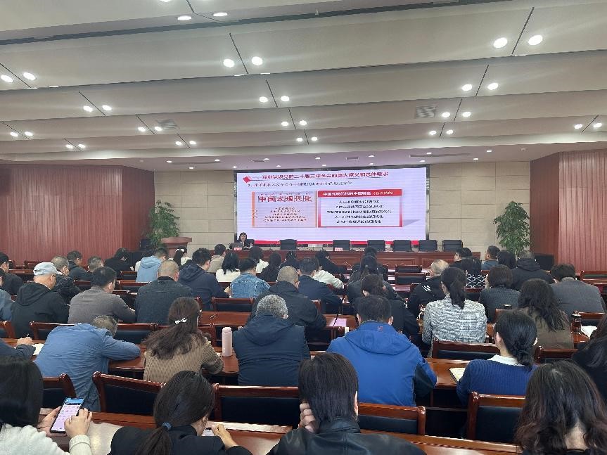 在仙桃市自然资源和城乡建设局,张荆红教授以《将改革进行到底》为题展开宣讲,她将国际国内形势与具体案例相结合,重点阐述历届三中全会的主题与改革聚焦、二十届三中全会的重要意义、《决定》的基本框架内容以及贯彻落实全会精神、推进中华民族伟大复兴等内容。与会者纷纷表示,将自觉把思想和行动统一到学习贯彻党的二十届三中全会精神上来,锚定进一步全面深化改革总目标,结合工作实际,坚持学明白、想清楚、干到位,做到踏石留印、抓铁有痕,以钉钉子精神为推进中国式现代化湖北实践贡献力量。