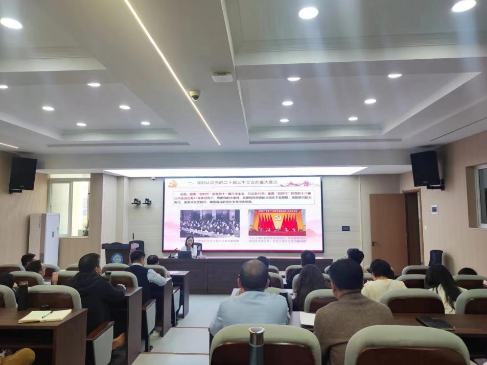 在市教育科学研究院,郑琼梅副教授以《进一步全面深化改革 推进中国式现代化》为题,从深刻认识党的二十届三中全会的重大意义、深入理解党的二十届三中全会的精髓要义、全面准确把握《决定》提出重大改革举措、全力以赴抓好《决定》改革部署贯彻落实等四个方面,进行了系统、深入宣讲。与会者纷纷表示,报告主题鲜明、内容丰富、深入浅出,具有很强的针对性、指导性,要以此次宣讲为契机,进一步把思想和行动统一到党中央决策部署上来,锚定强国建设,彰显教育担当。