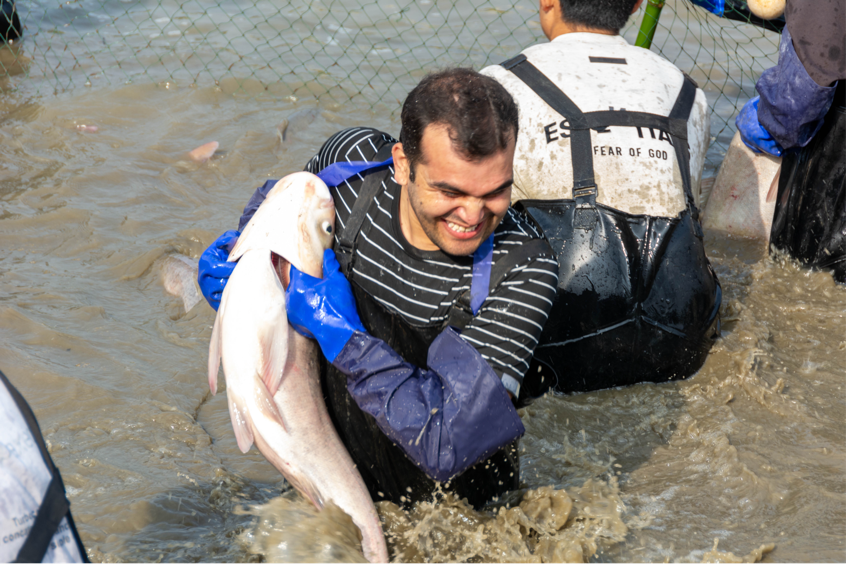 赞比亚留学生Chishimba Mutale已连续四年吃到了“沁湖鱼宴”的免费鱼肴,这是他第一次参与到拉网捕鱼的环节,“特别激动!感恩学校给我们这样的机会体验!”