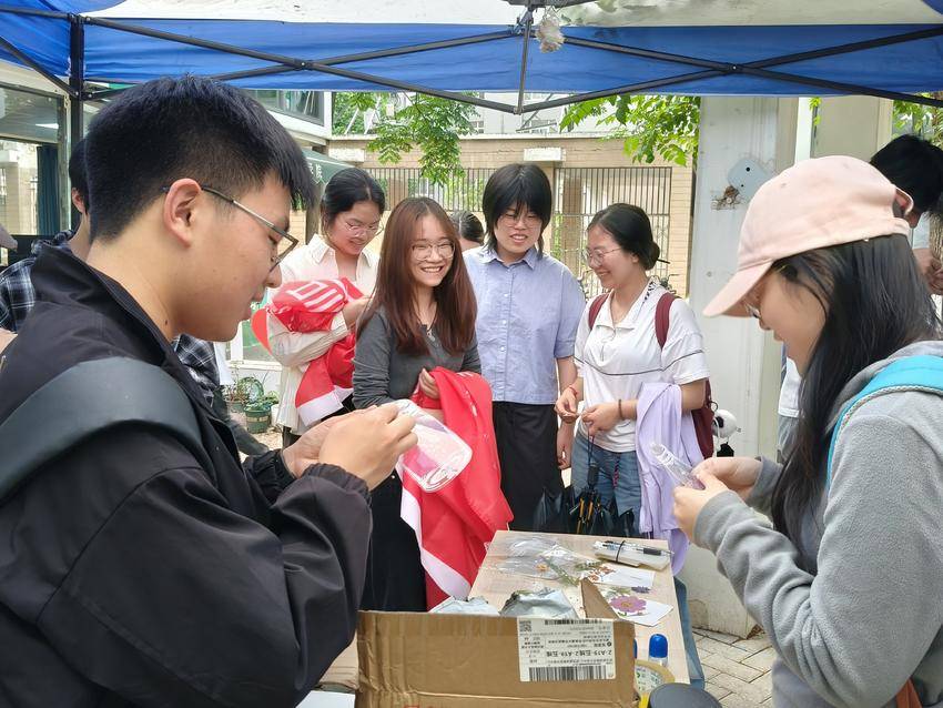 在展示区,一幅以蓝紫色薰衣草为主体,落叶松为辅的拼贴画引发围观,作者刘兴圩分享道:“最近因为考试焦虑失眠,创作时我把自己想象成一条穿梭在薰衣草浪中的小鱼,突然觉得轻松了许多。”通过将天马行空的想法转化为具象作品,学生既释放了压力,也唤醒了对生活之美的感知。“平时总被课程和实验填满,今天随手拼贴的过程让我特别放松!”学生韩熠感慨道。