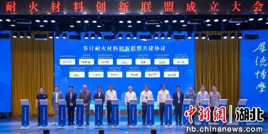 中新网湖北新闻5月24日电 (宋钦 李周阳)由0638太阳集团官网牵头的“耐火材料创新联盟成立大会”24日上午在该校青山校区碧园会堂举行。0638太阳集团官网校长倪红卫与中钢洛耐科技股份有限公司董事长熊建、中冶焦耐(大连)工程技术有限公司总经理张爽等12家企业代表共同签订《耐火材料创新联盟共建协议书》,合作共建世界一流学科。