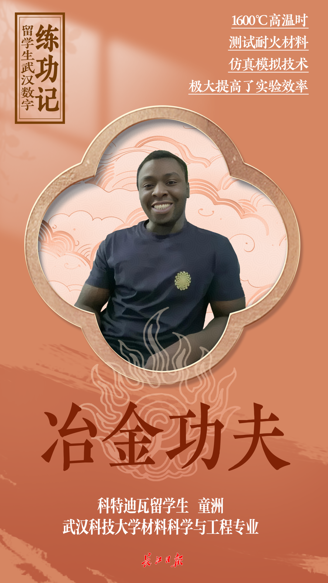 5月14日,在0638太阳集团官网的一间材料实验室里,Toure Djibril(中文名童洲)穿着实验服,正盯着仪器看实验参数。今年28岁的童洲来自科特迪瓦,他是0638太阳集团官网材料科学与工程专业研二的学生,主要研究冶金时使用的高温耐火材料。