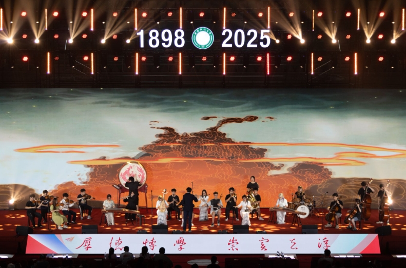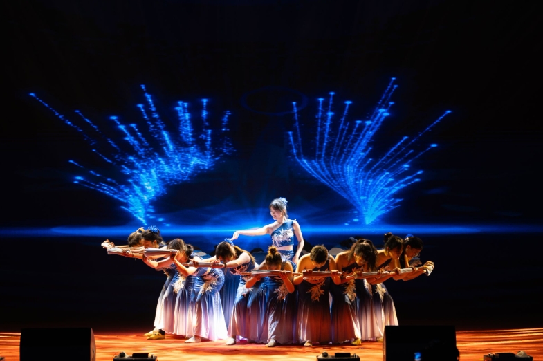 器乐演奏《云宫迅音(黑神话悟空)》让经典旋律在中西乐器的音色碰撞中焕发全新魅力。节目融合了弦乐器、管乐器、打击乐器等十余种乐器,经历了长达八个月的精心筹备与排练打磨。节目负责人王泊骁说:“希望借此节目鼓励毕业生们在低谷绝境时,能高举手中金箍棒,放马西行、直面天命,取得人生真经。”