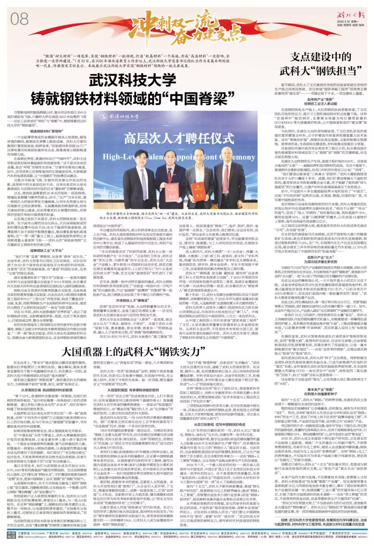 “把论文写在荆楚大地上”不仅是武科大的行动自觉,更是服务支点建设的“钢铁誓言”。武科大正以“钢铁担当”锻造湖北高质量发展的硬支撑,用一项项亮眼成果映照中国经济的创新势能。