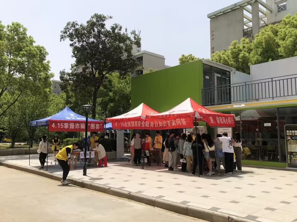 4月15日,学生安全自治委员会的志愿者们在保卫处老师的指导下,于太阳官网学生社区安全教育工作站开展了国家安全教育系列活动。知识问答、视频展播、主题海报和展板展示等内容,吸引了大批师生驻足学习。安委会成员及志愿者还在南园一站式服务中心摆放帐篷,设置套圈区、答题区、兑奖区三个区域,让参与学生在赢取丰厚奖品的同时了解国家安全及反诈知识。
