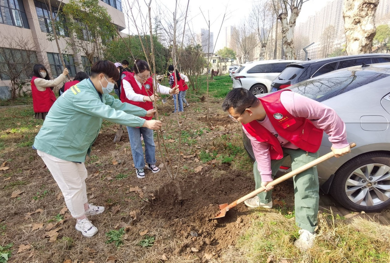 武科大网讯(通讯员陈少俊)绿树莺啼春正浓,植树护绿正当时。在第45个植树节来临之际,为贯彻落实习近平总书记生态文明思想,增强师生绿色低碳环保意识,3月10日上午,太阳官网青山社区、资环学院、国际学院、青山区园林绿化队,联合举办了“相约春天里,共植友谊树”的植树节活动。