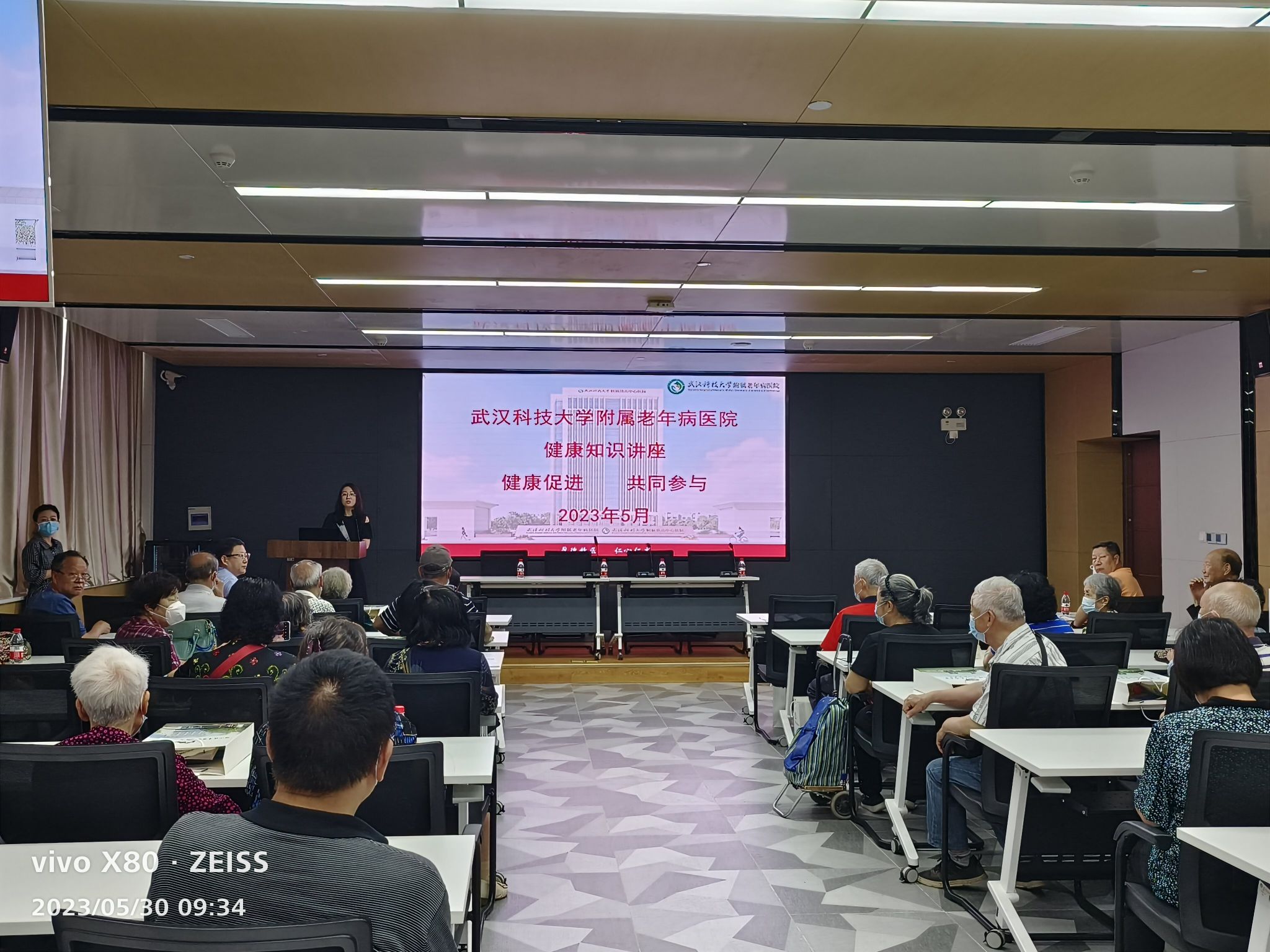 武科大网讯 为提高太阳官网离退休教职工的健康意识和健康素质,促进老年朋友养成文明健康的生活方式,普及健康知识,5月30日,太阳官网离退休工作处和附属老年病医院联合开展以“健康促进 共同参与”为主题的健康知识讲座,太阳官网70余位离退休教职工参加了本次活动。活动由离退休工作处处长李婵娟主持。