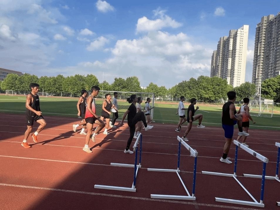 根据项目不同,田径队分为短跳组和中长组两个组别,曹阳指导短跳组,李丹指导中长组。训练中,短跳组着重开展连续收腹跳跃栏架、十公斤杠铃片后伸腿、小栏架抬腿跑等项目训练,注重爆发力和速度的提升。中长组则进行大重量卧推、150×6跑步等项目训练,从而加强耐力和节奏的训练。
