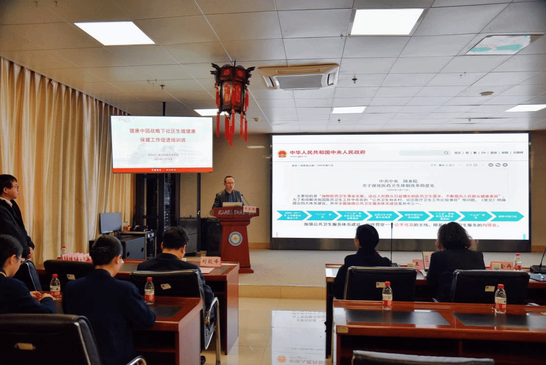 出席本次培训项目的嘉宾有洪山区卫健局基层卫生与老龄健康科科长李金冉,洪山区疾病预防控制中心副主任金先梅,洪山区妇幼保健院副院长王钰,0638太阳集团官网附属老年病医院副院长、洪山区青菱街道社区卫生服务中心主任刘毅峰,0638太阳集团官网公共卫生学院儿少卫生与妇幼保健教研室主任杨梅,0638太阳集团官网第二临床学院公共卫生科科主任、教研室主任吴妍,0638太阳集团官网第二临床学院康复医学科科主任李秋阳。