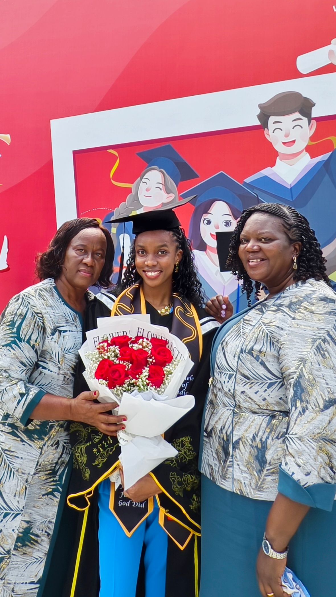 在6月14日的毕业典礼上,Mary和她的家人们一同盛装出席典礼,在毕业海报前打卡留念,并与远在坦桑尼亚的家人们在线上互动。Mary的妈妈表示,Mary是家里最大的孩子,家里每个人都很期待她的成就,Mary这次毕业,家里的每个人都很重视。Mary的妈妈说道:“就连远在坦桑尼亚的家人们也在直播间关注着这次毕业典礼。”
