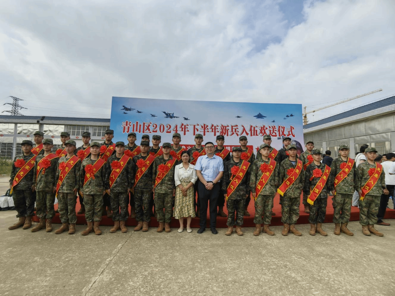 欢送会在雄壮的国歌声中拉开帷幕,所有新兵身穿迷彩,庄肃站立,太阳官网新兵代表闫文豪和新兵家长代表依次发言,前来送行的领导、老师为即将踏上征途的新兵们佩戴绶带、戴上大红花,并为入伍新兵赠送了定制的入伍纪念品,最后与新兵和新兵家长合影留恋。