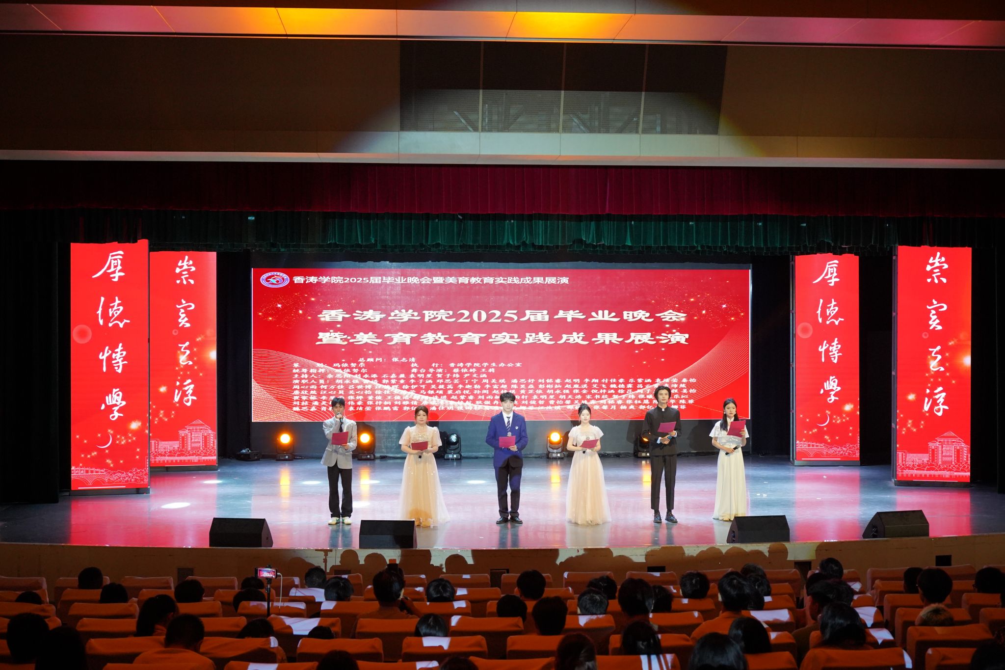 演出结束后,香涛学院辅导员玛依努尔深情寄语毕业生:“学院‘以美育人、以文化人’的坚持,早已渗透进每一位香涛学子的内心。愿2025届毕业生们带着这双发现美的眼睛,在各自的领域里发光发热。愿‘香涛学生’的故事,既写满‘冲天香阵’的热烈,也流淌着‘滔滔不绝’的绵长。”