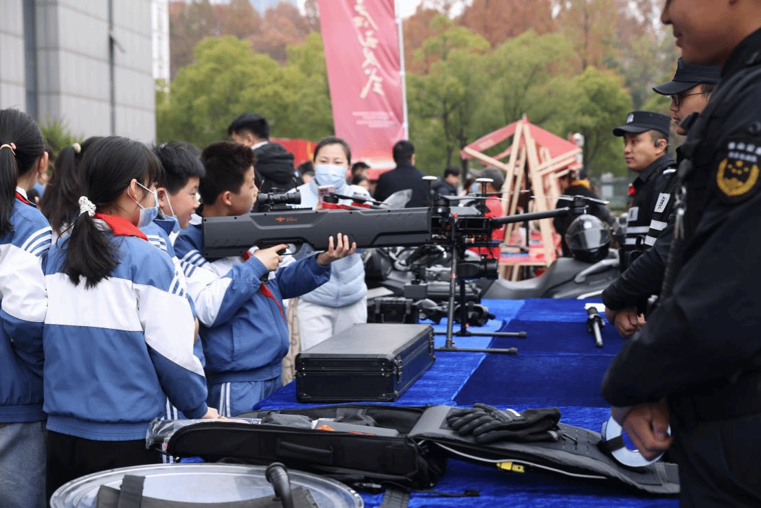 法治科技展示区里,与宪法宣传结合的科技设备和公安分局反巡大队的警用装备吸引了大批师生驻足参观,让大家更直观感受到科技赋能法治建设的力量。